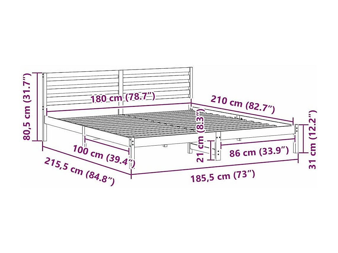 Bedframe extra lang zonder matras massief hout 180x220 cm
