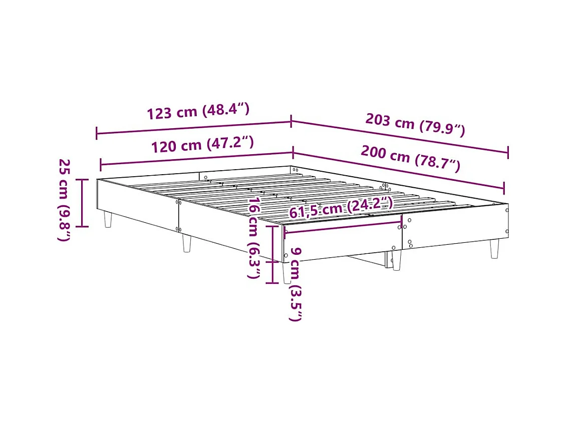 Bedframe zonder matras bewerkt hout sonoma eikenkleur 120x200cm
