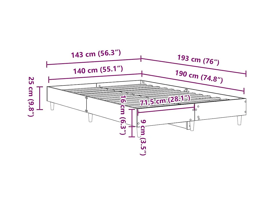 Bedframe zonder matras 140x190 cm spaanplaat bruin eikenkleurig