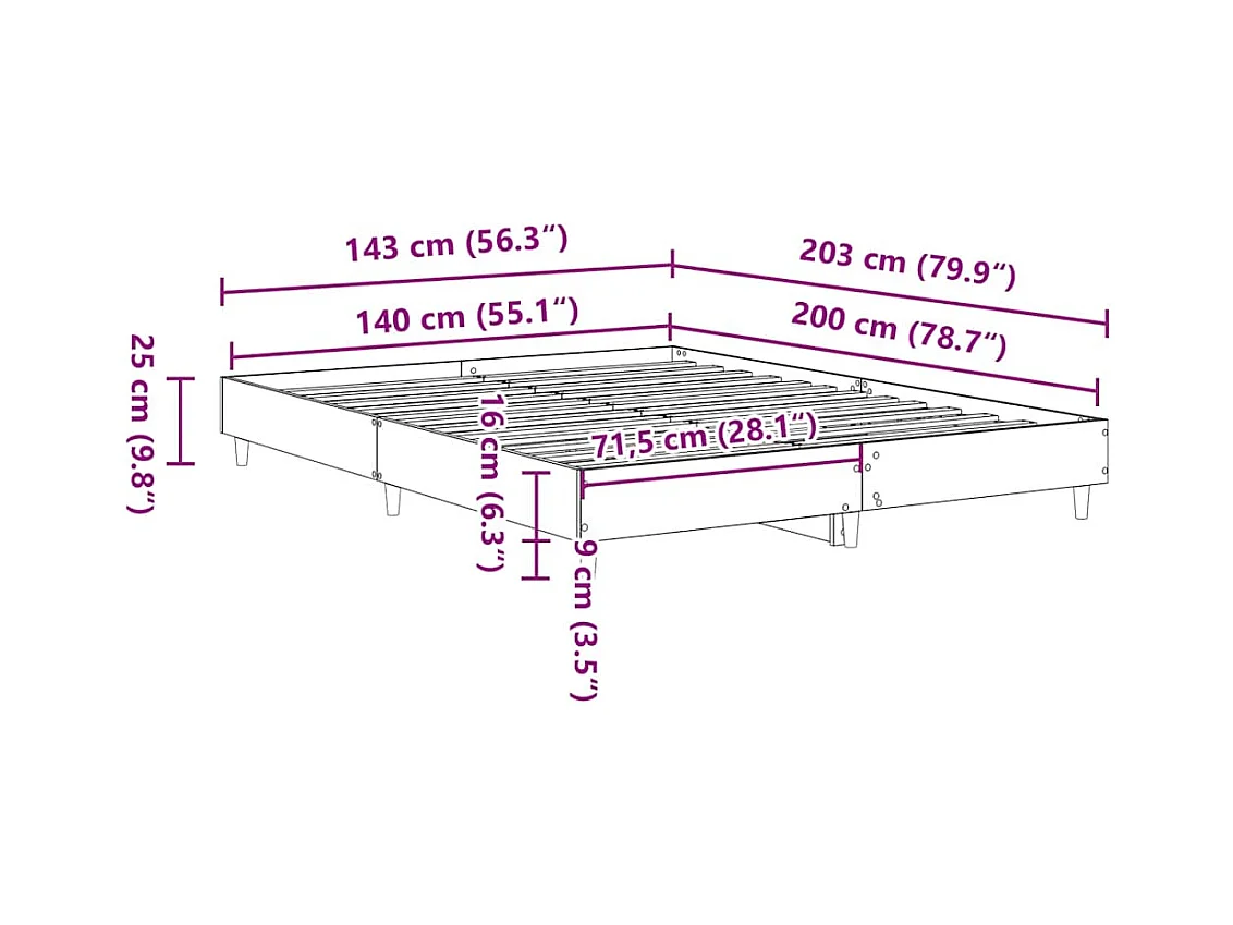 Bedframe zonder matras bewerkt hout sonoma eikenkleur 140x200cm