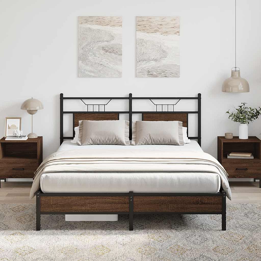 Bedframe bewerkt hout metaal gerookt eikenkleurig 140x200 cm BE958388