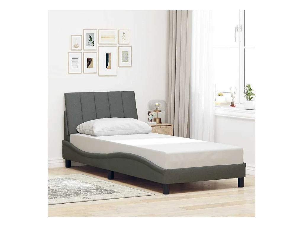 Bedframe zonder matras donkergrijs 90x200 cm stof