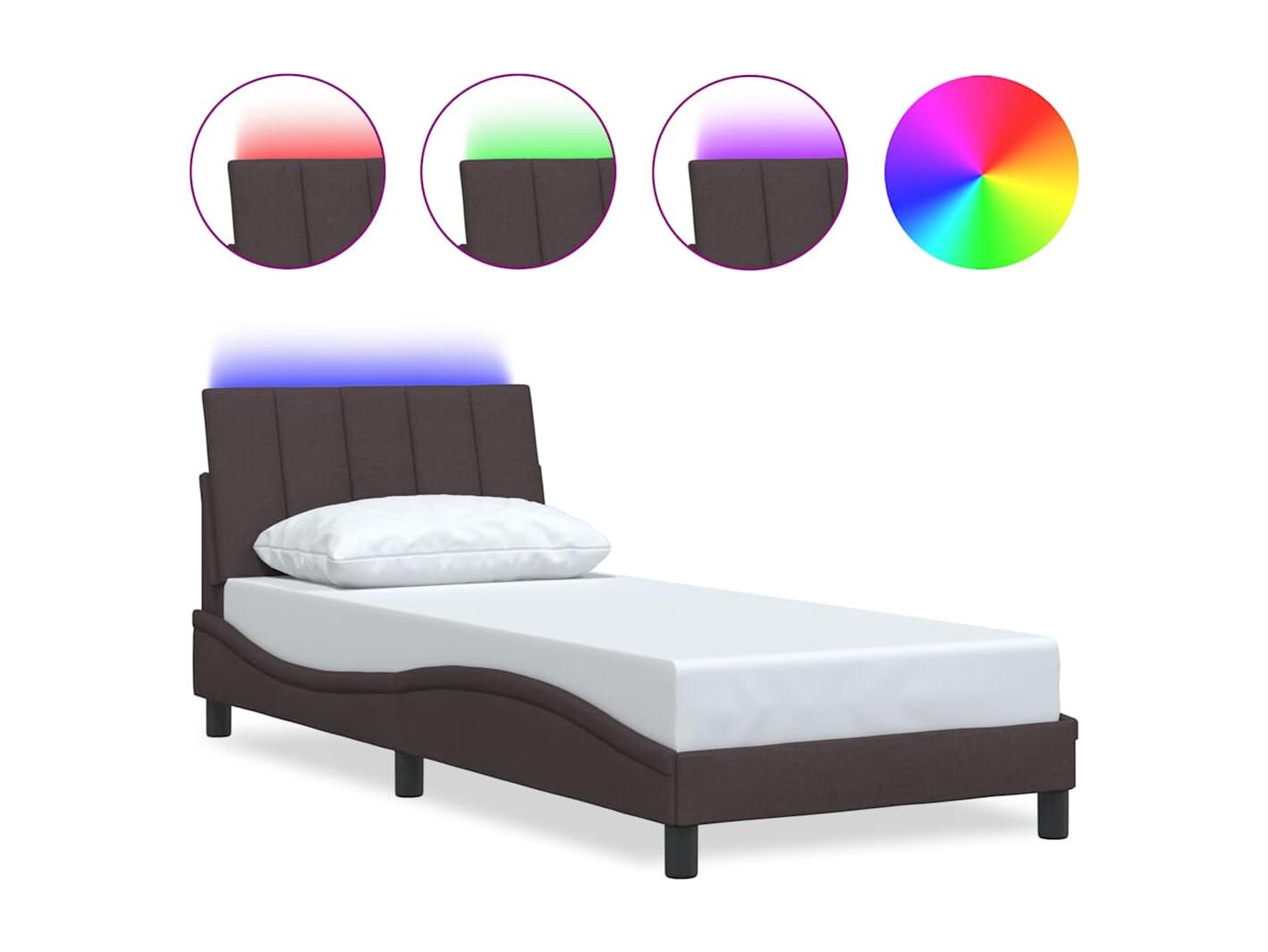 Bed met matras "Hanko" stof donkerbruin 90x190 cm