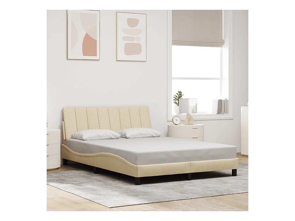 Bedframe zonder matras stof crèmekleurig 140x190 cm