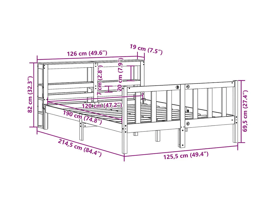 Bedframe massief grenenhout 135x190 cm Double
