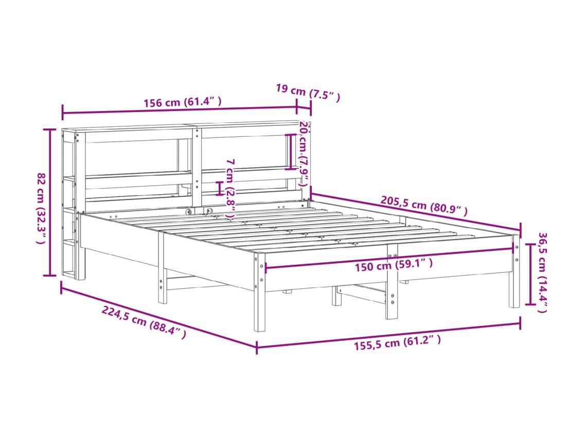 Bed met boekenkast zonder matras massief grenenhout 150x200 cm