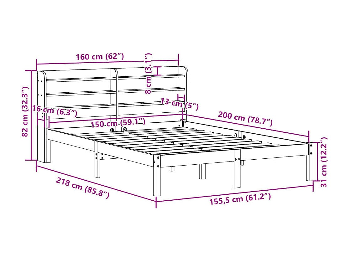 Bedframe zonder matras massief grenenhout 150x200 cm