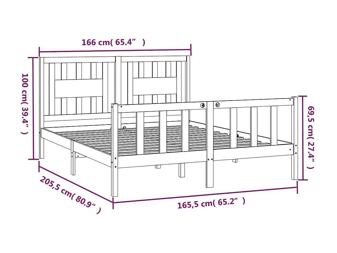 Bedframe zonder matras massief grenenhout 160x200 cm