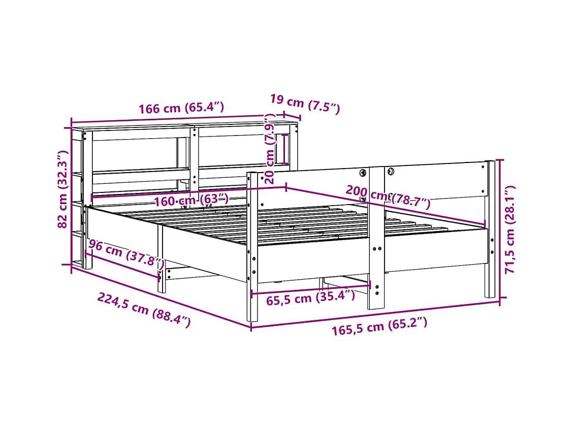 Bedframe zonder matras massief grenenhout wasbruin 120x200 cm