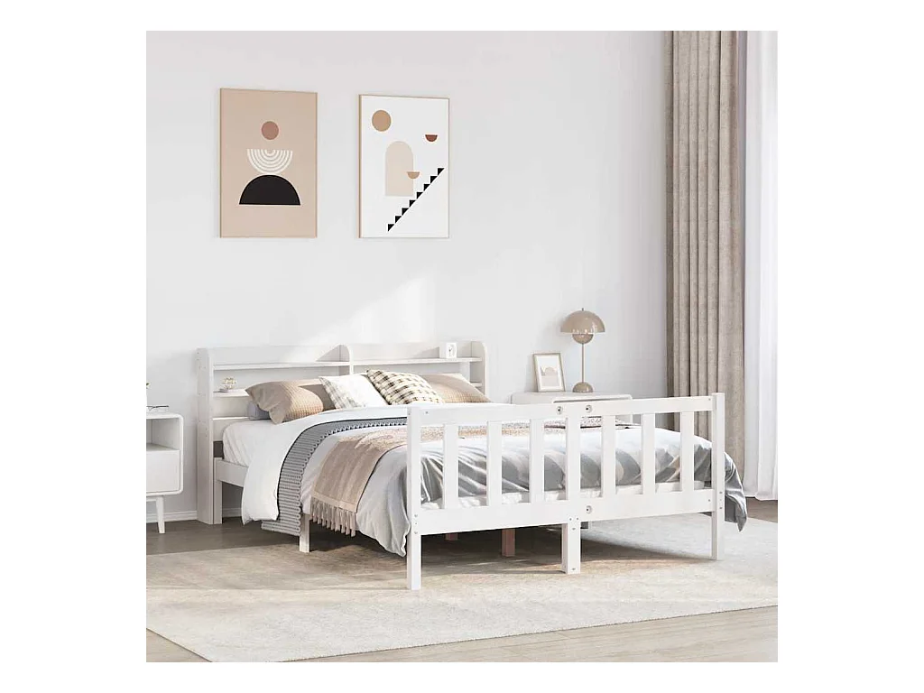 Bedframe met hoofdbord massief grenenhout wit 140x190 cm