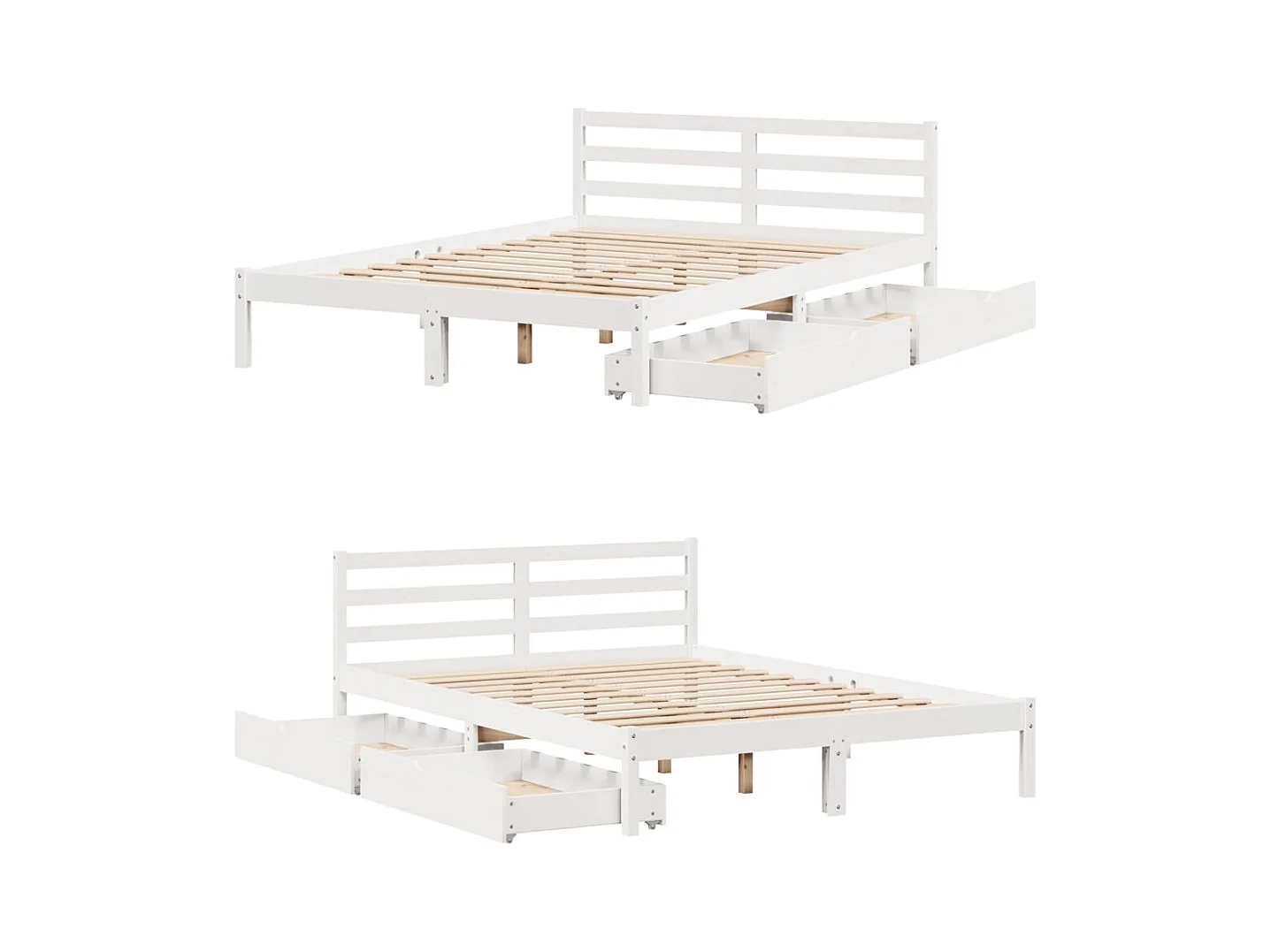 Bedframe met lades massief grenenhout wit 160x200 cm