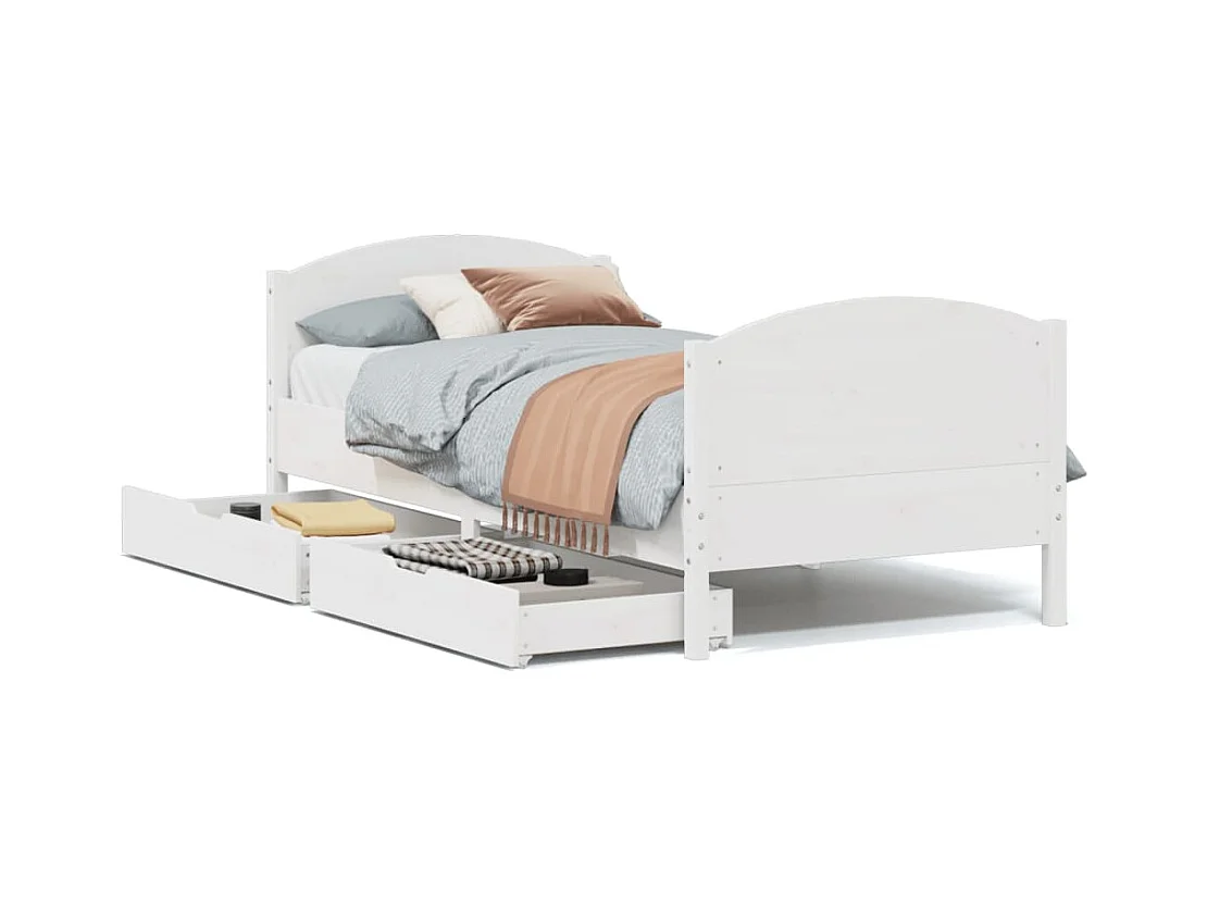 Bedframe zonder matras met lades grenenhout wit 75x190 cm