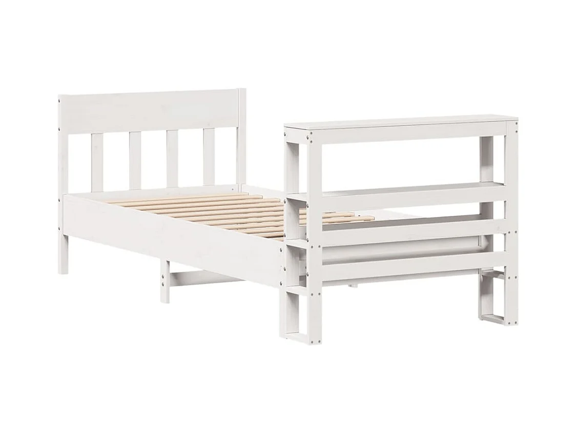 Bed met boekenkast zonder matras grenenhout wit 90x190 cm