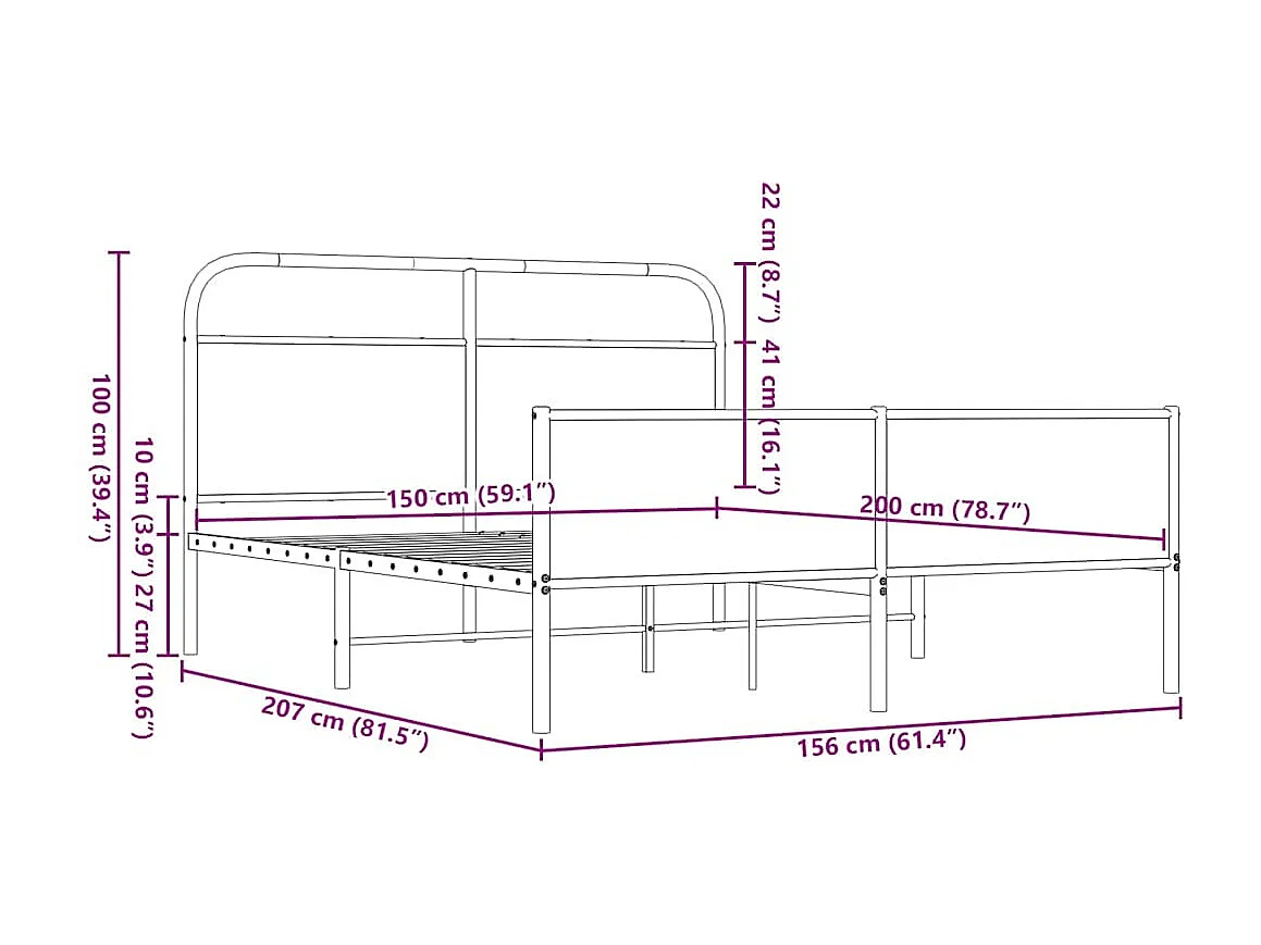 Bedframe zonder matras metaal bruin eikenkleurig 150x200 cm