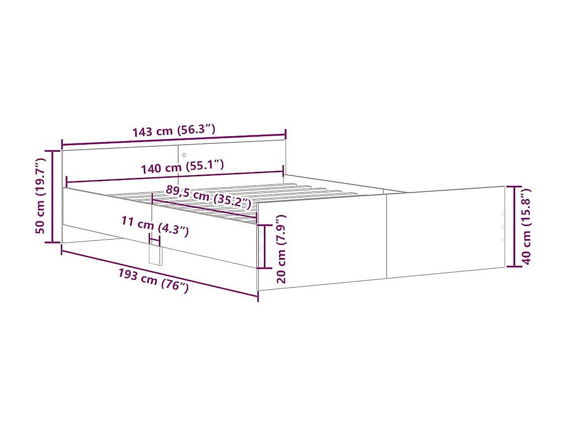 Bedframe zonder matras sonoma grijs 140x190 cm