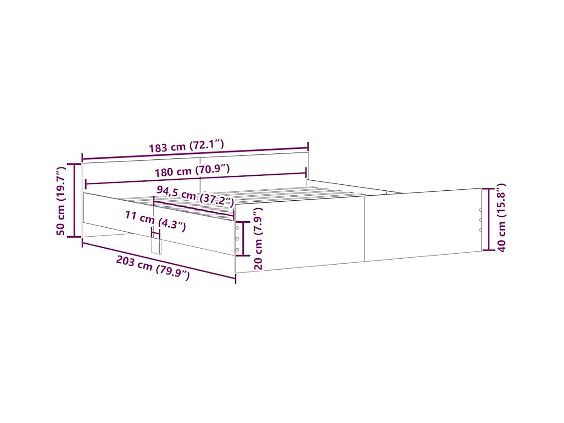Bedframe zonder matras hout gerookt eikenkleurig 180x200 cm