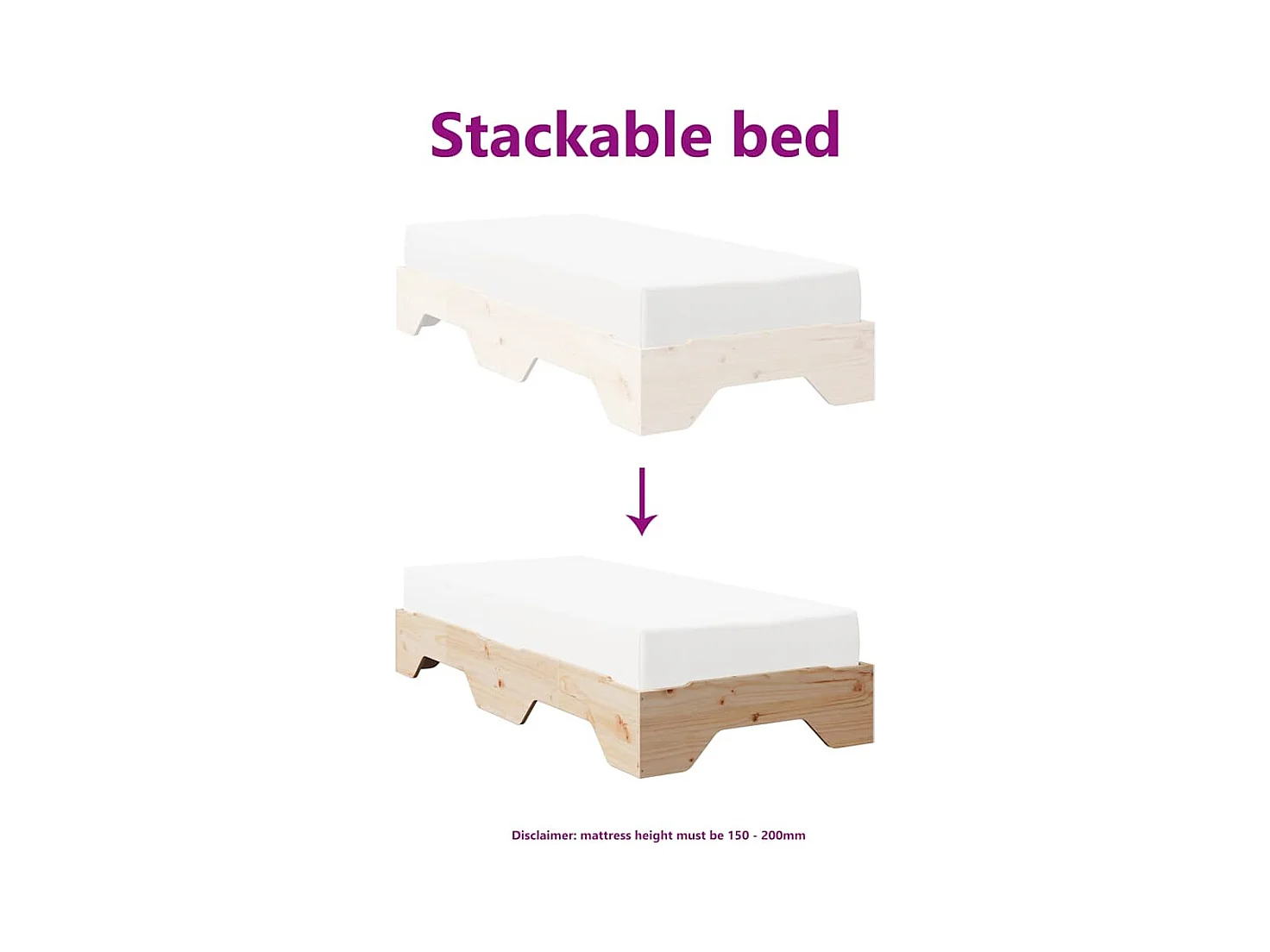 Bedframe zonder matras stapelbaar 75x190 cm massief hout