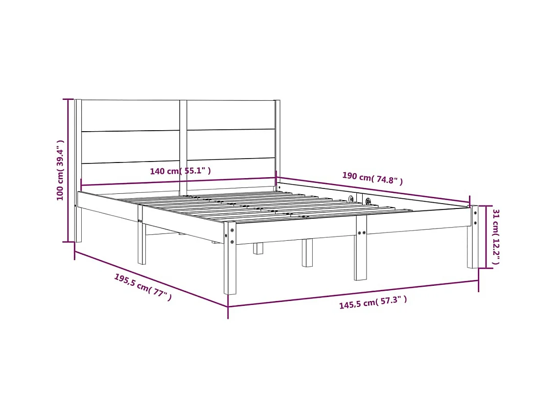 Bedframe zonder matras wit 140x190 cm massief grenenhout