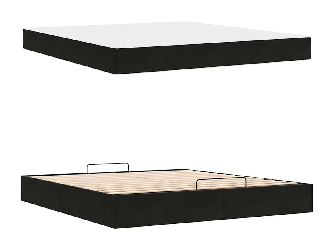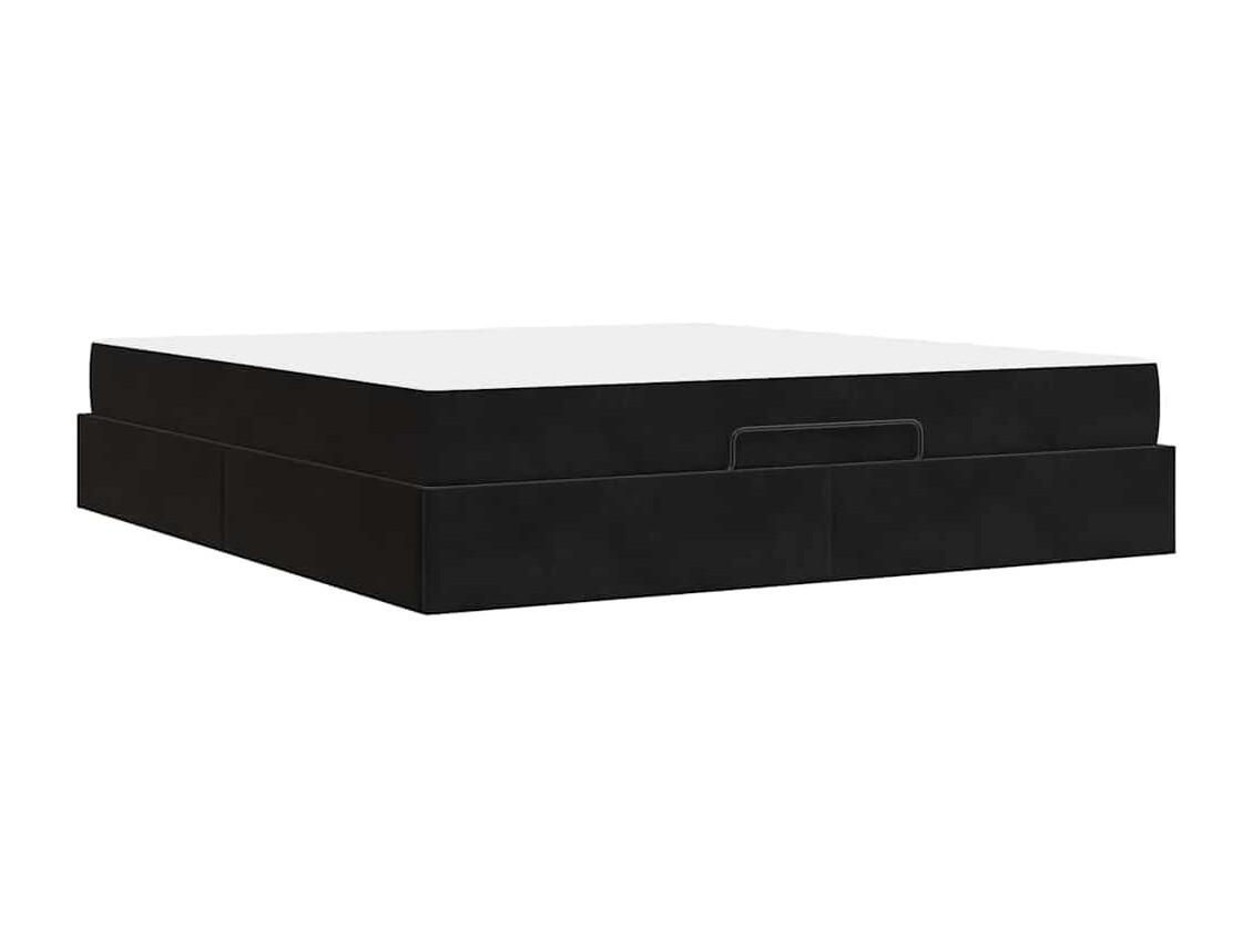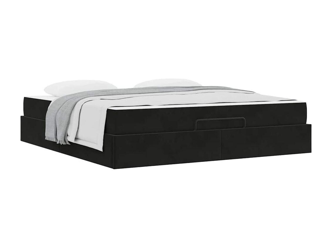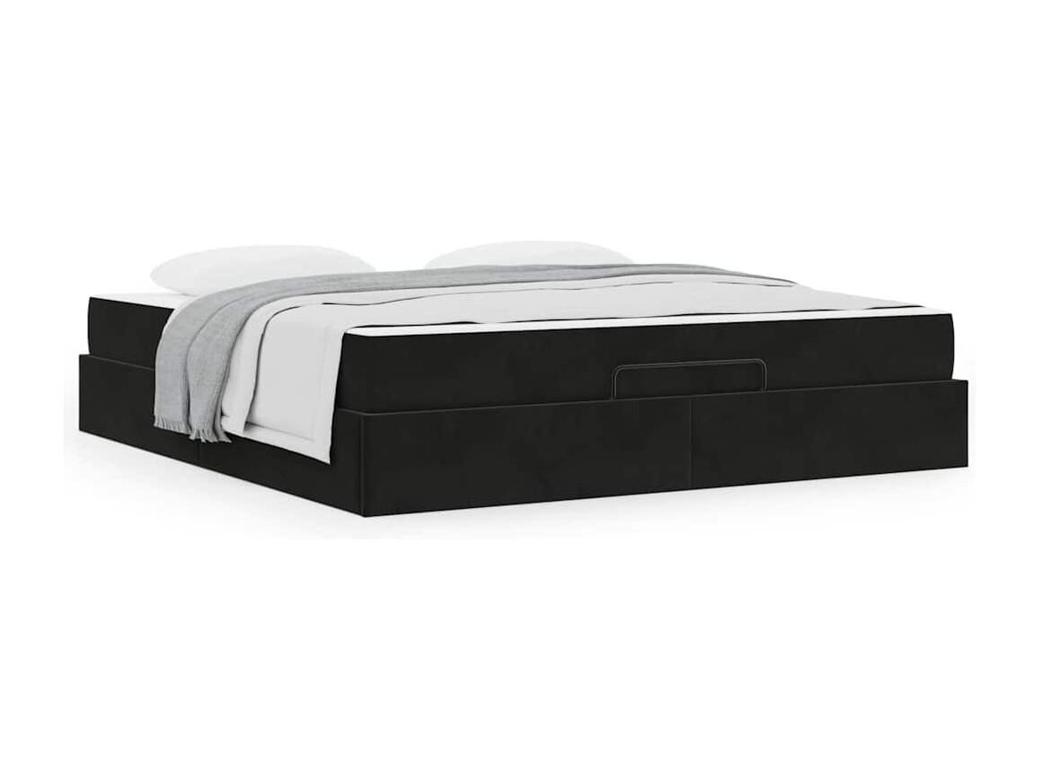 Tweepersoonsbed voor volwassenen 180x200 cm met lattenbodem en 2 opberglades - gewatteerd hoofdeinde - fluweel - zwart (zonder matras)
