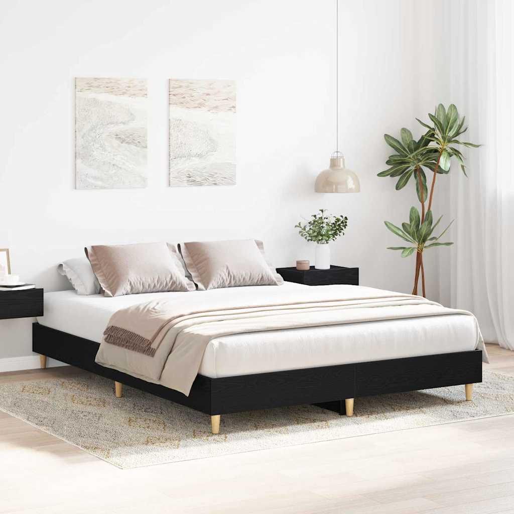 Bedframe Zwart Eiken 140 x 200 cm Bewerkt hout