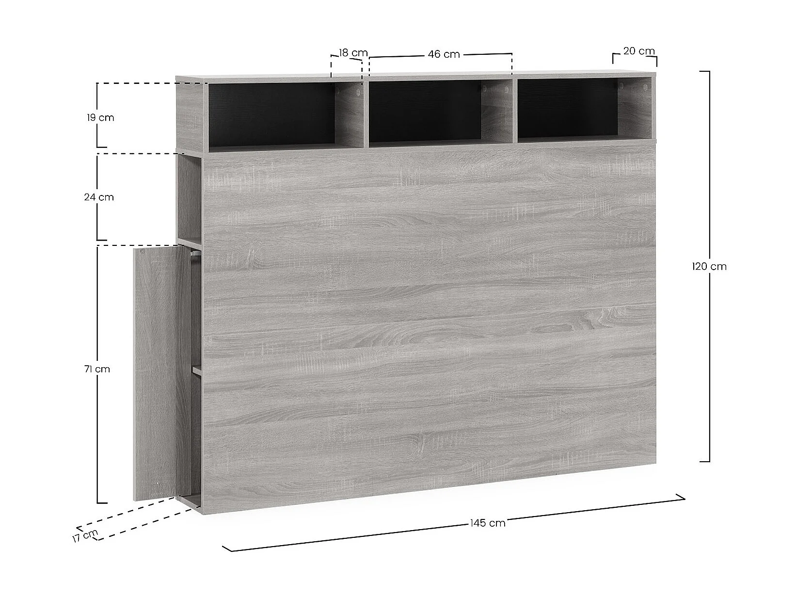 Bedhoofd Zeus 145 cm met opbergruimte Eiken, 2 deuren 9 vakken