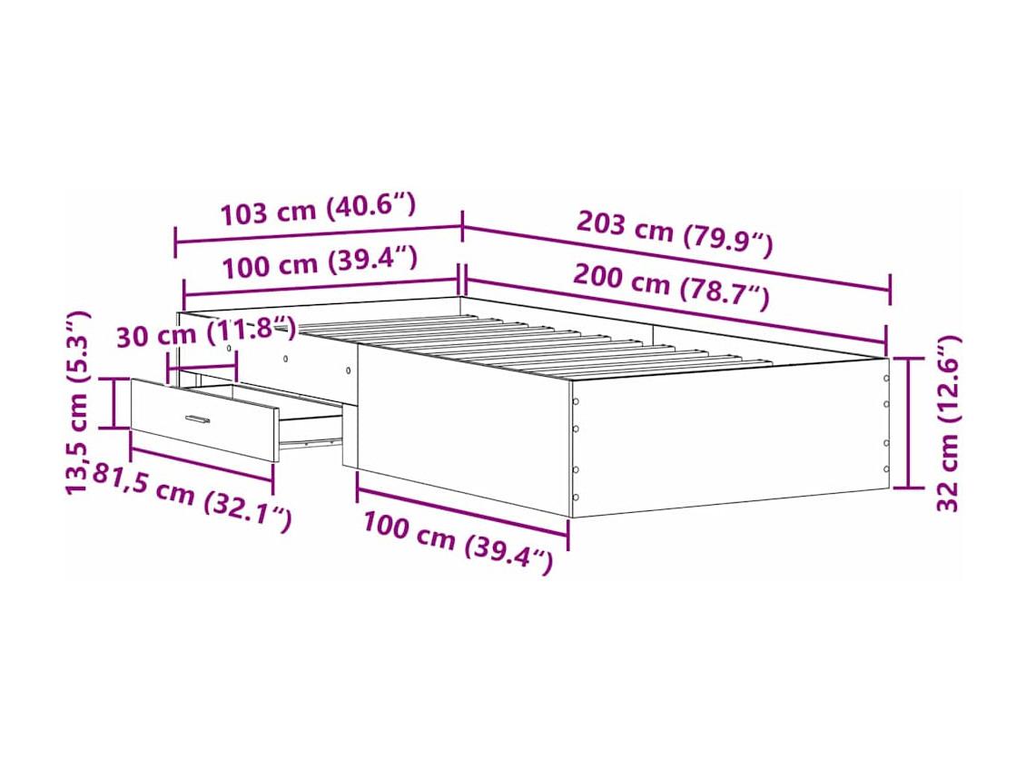 Bedombouw met lades Zwart eiken 100 x 200 cm Bewerkt hout