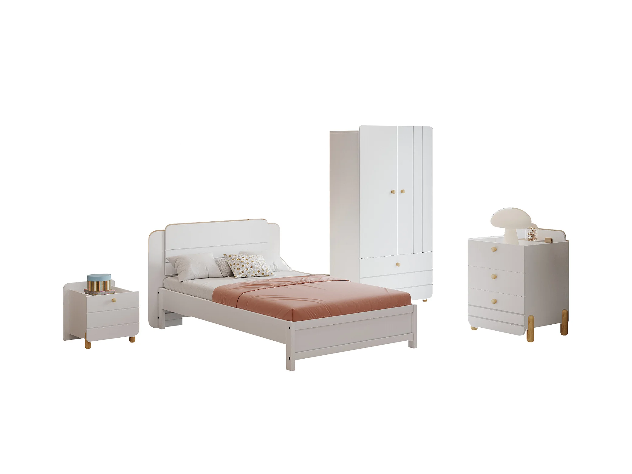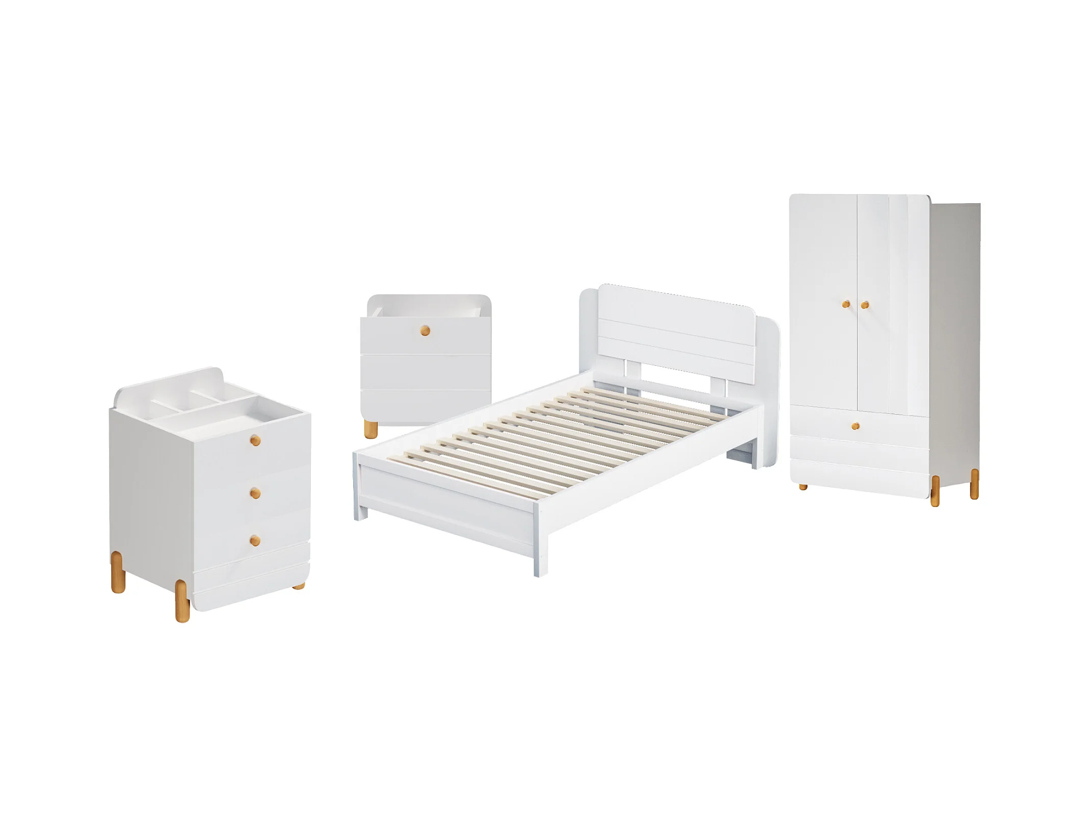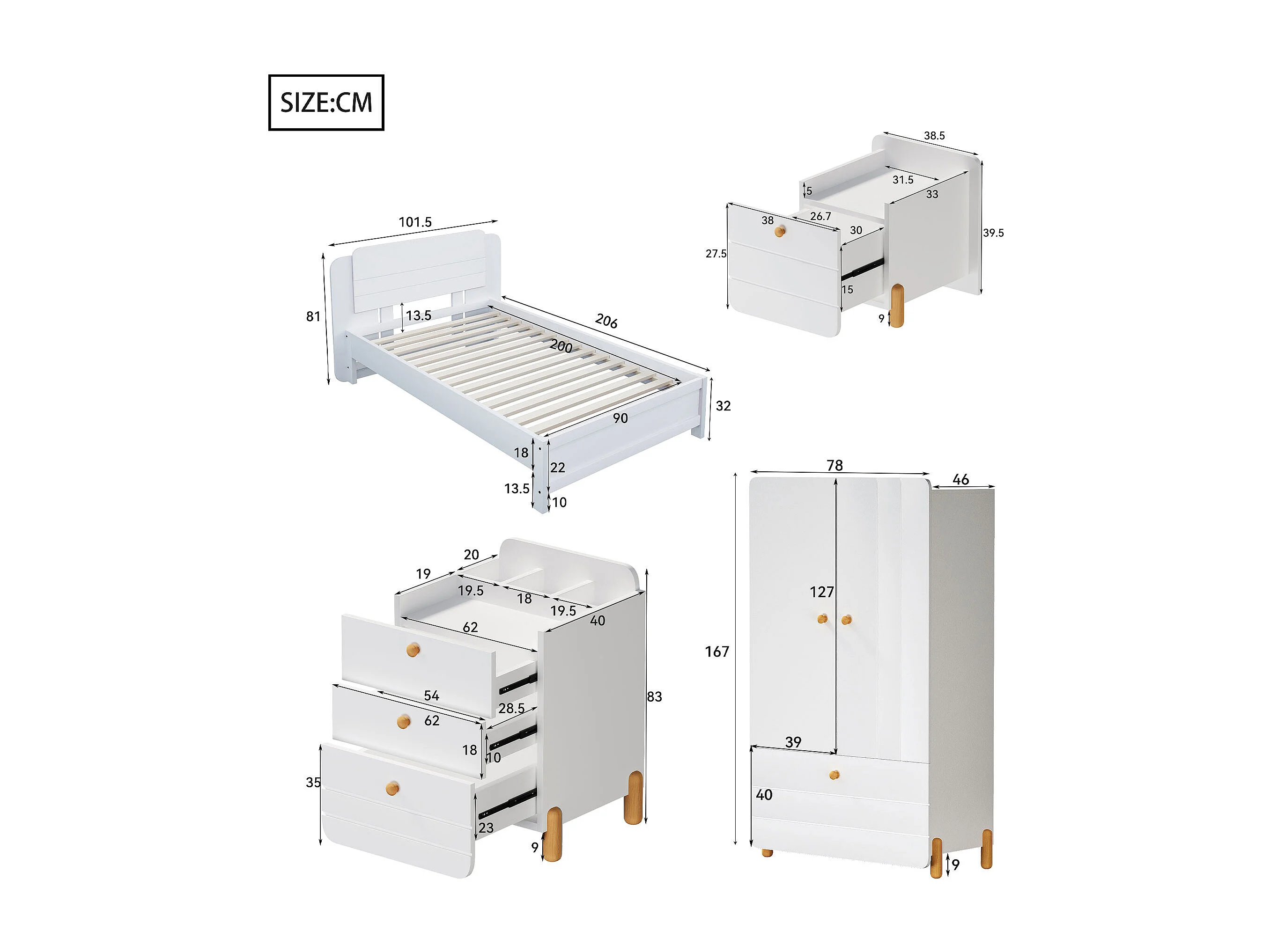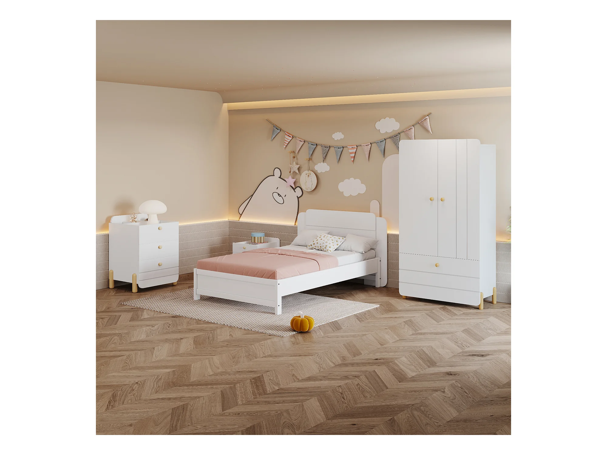 Bedset met nachtkastje 90 x 200 cm + Boxspring + Ladekast + Kledingkast - Kleur: Wit