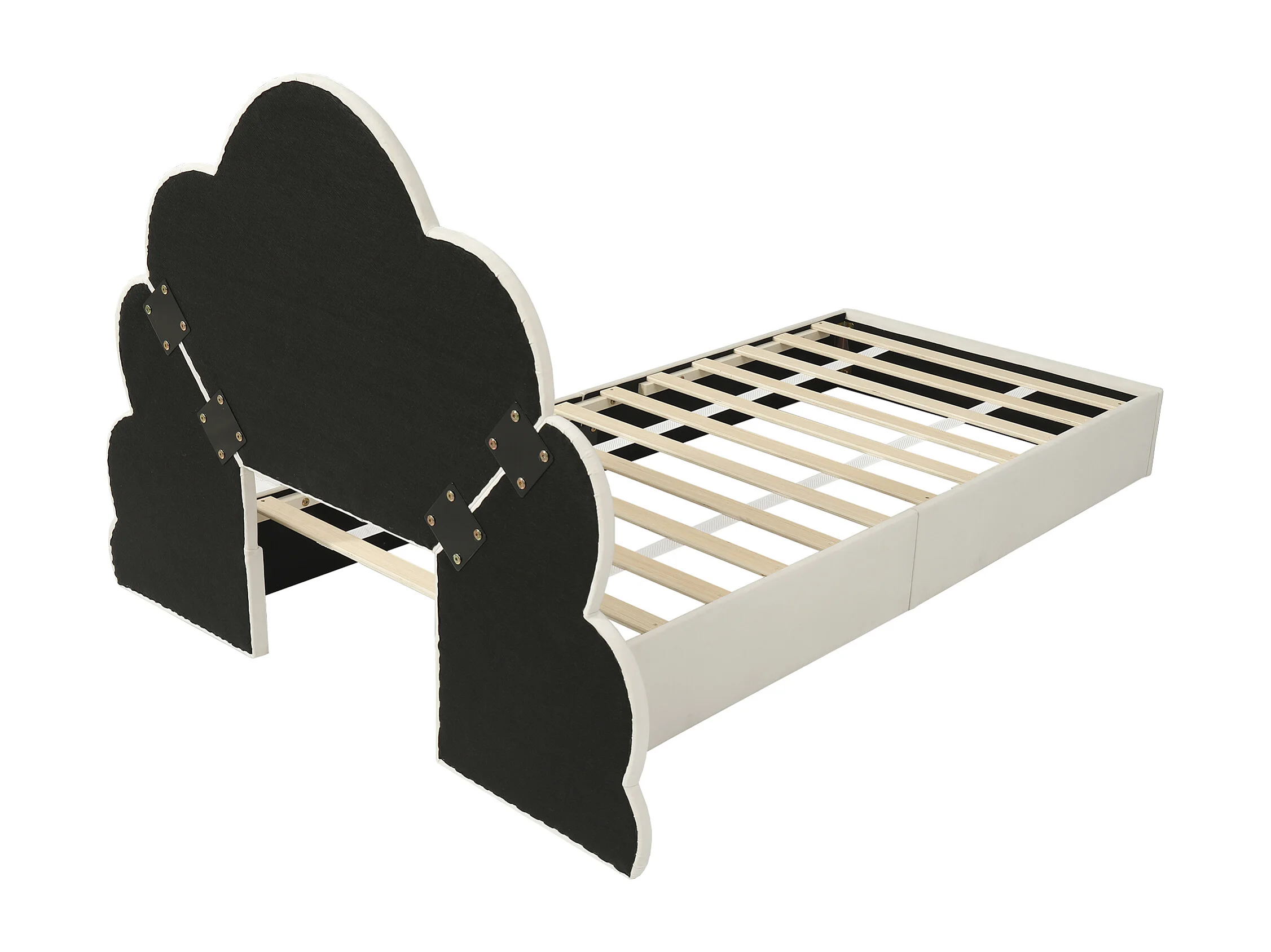Kinderbed bekleed met fluweel met LED in diverse kleuren - wolkvormig hoofdeinde - houten lattenbodem - 90x200cm - Beige