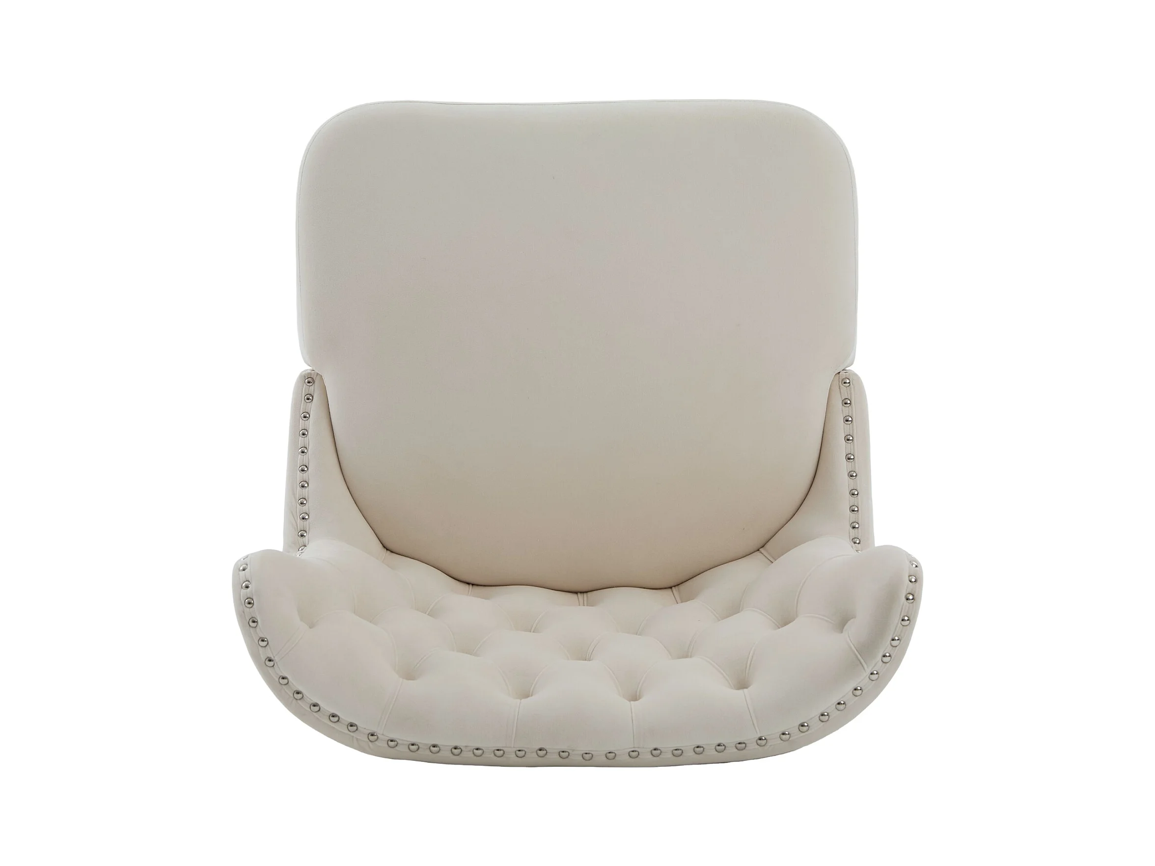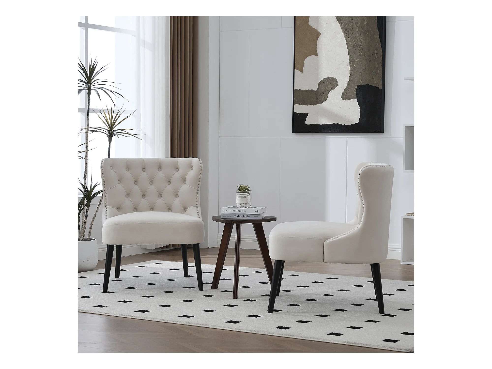 Beige stoel - Stoel met geklonken afwerking en massief houten poten - fluweel