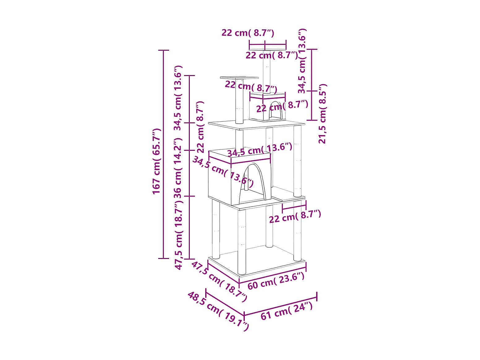 Bekk Kattenmeubel met sisal krabpalen 167 cm donkergrijs
