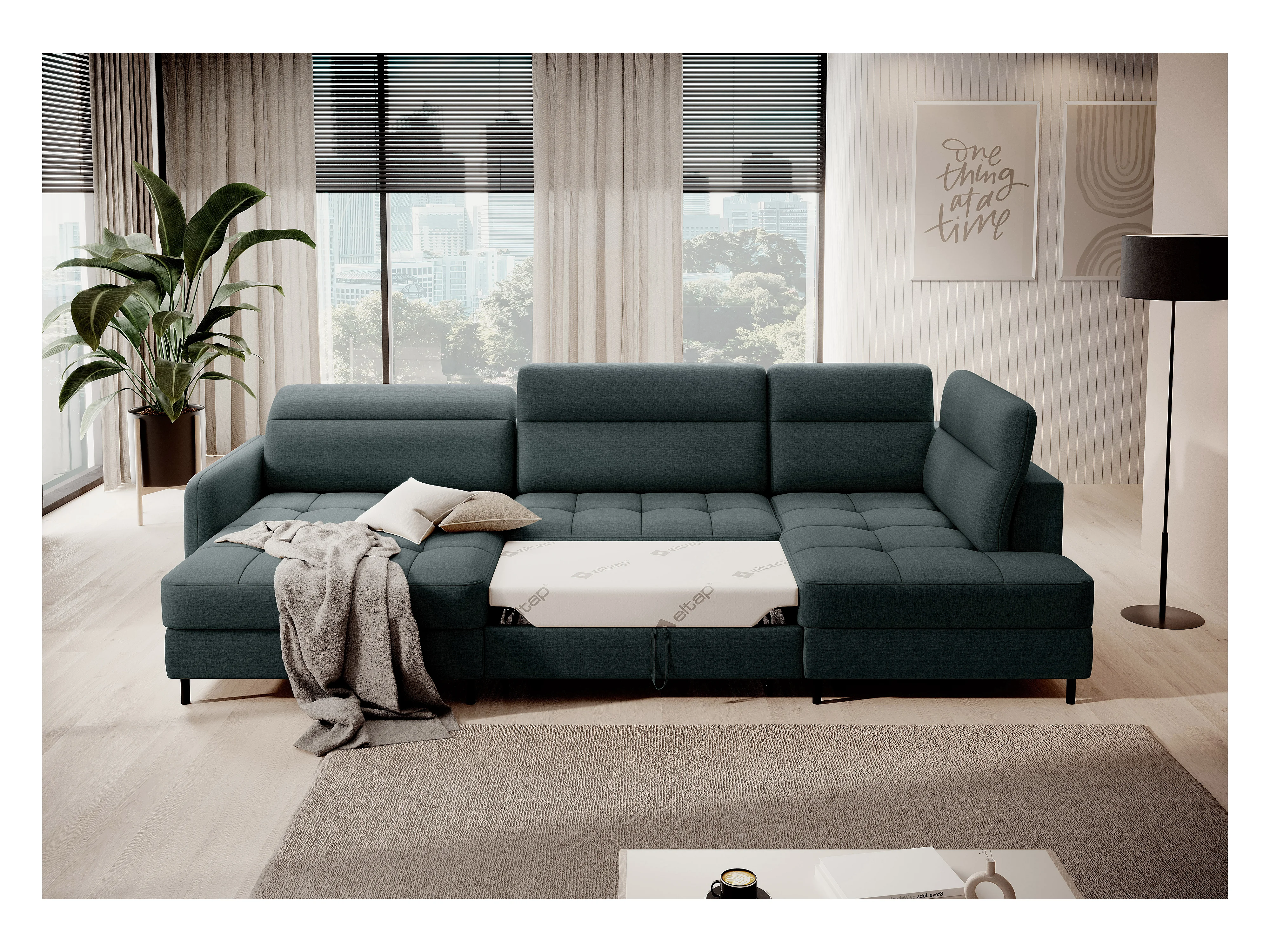 BENTO converteerbare panoramische stoffen bank met opbergvak-Kleur Keizerlijk Groen-juiste hoek