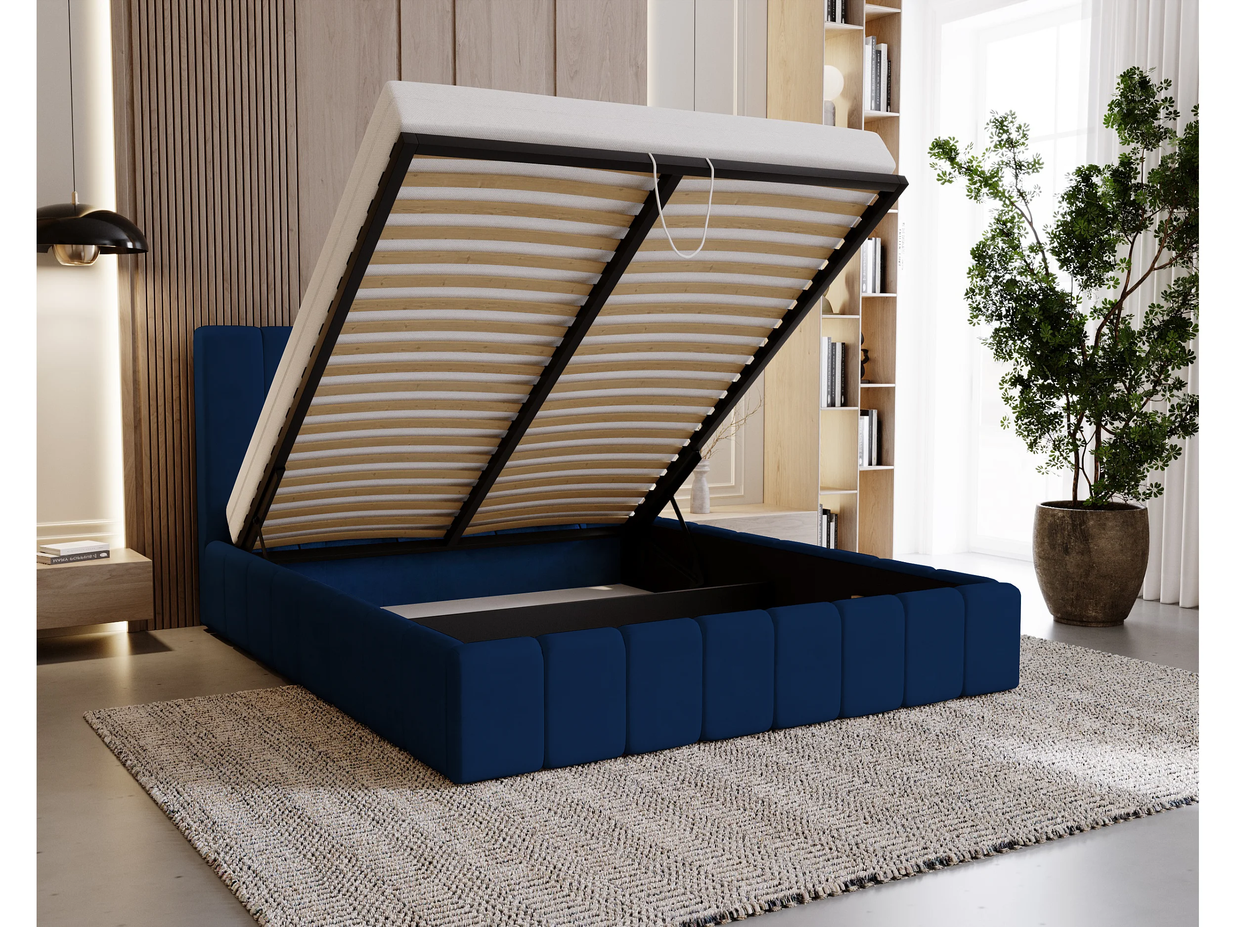 Gestoffeerd bed Venezia 130x212x90 cm Slaapvlak 120x200 cm, opbergruimte, gaslift, stof Monolith marineblauw