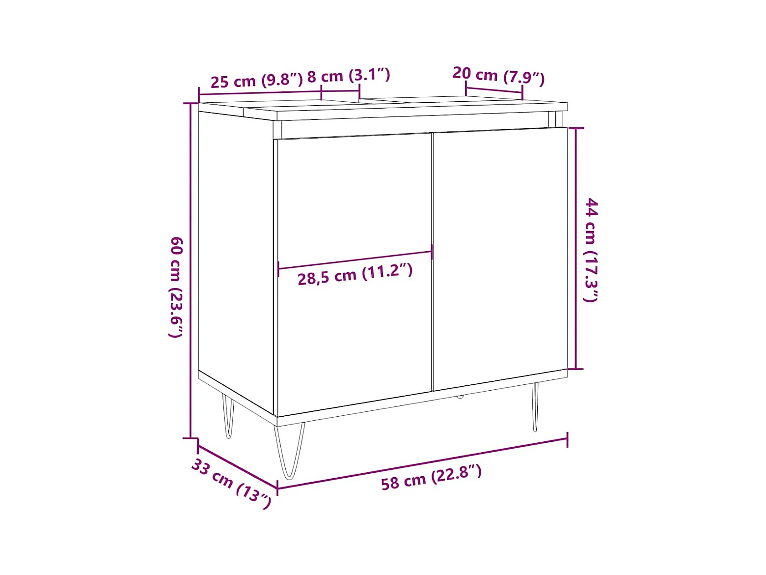 Sonoma Grey Badkamerkast 60x33x60 cm Bewerkt Hout