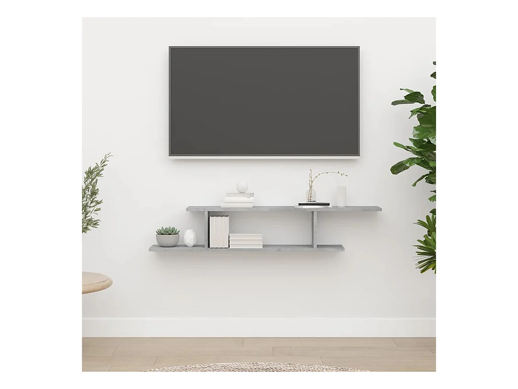 Betongrijs wandmeubel voor tv 125x18x23 cm, vervaardigd uit bewerkt hout