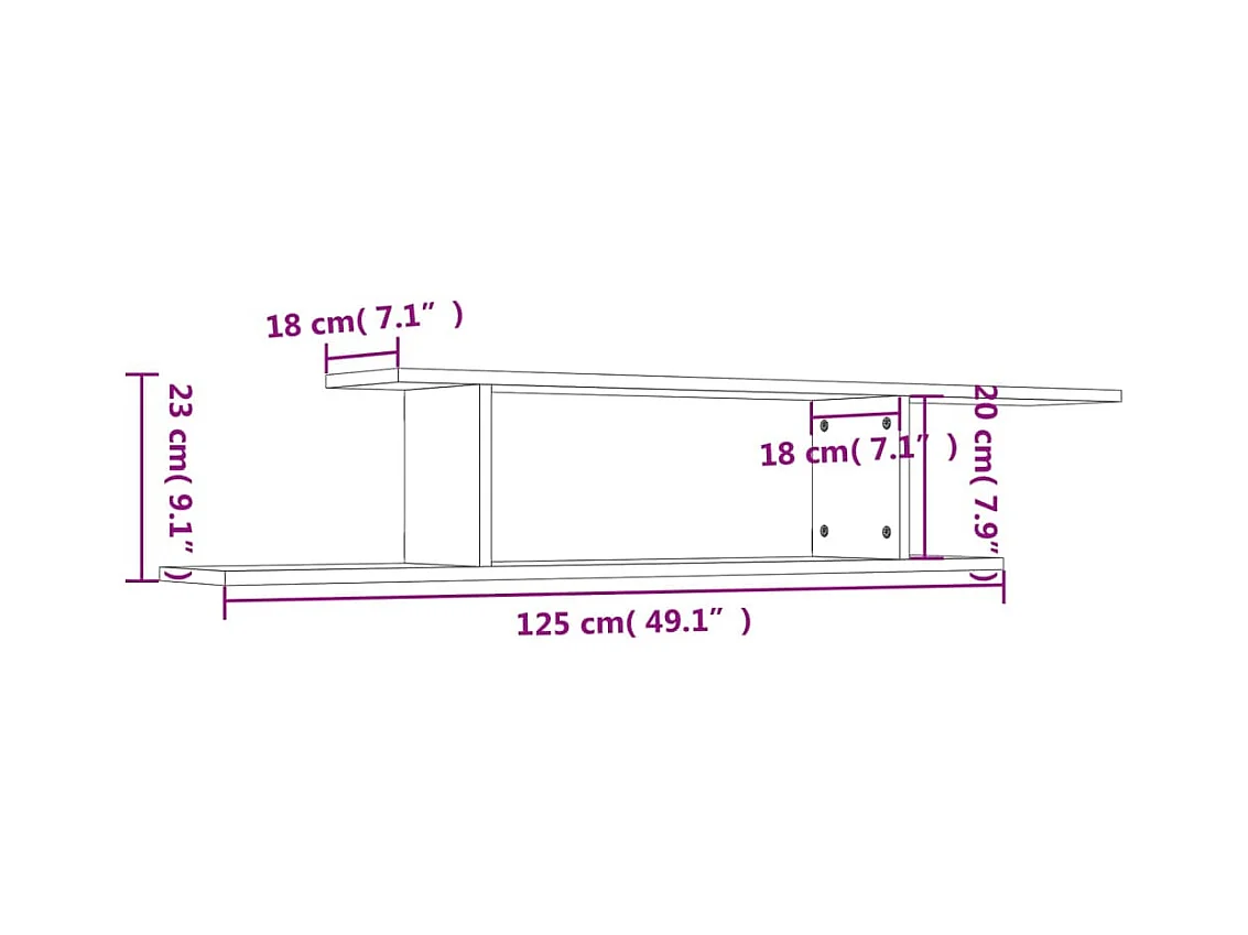 Sonoma Grey 3-laags wandplank 60x21x78,5 cm