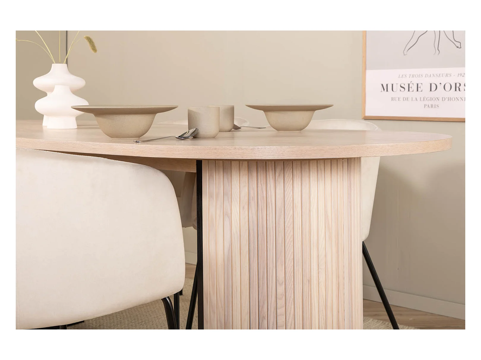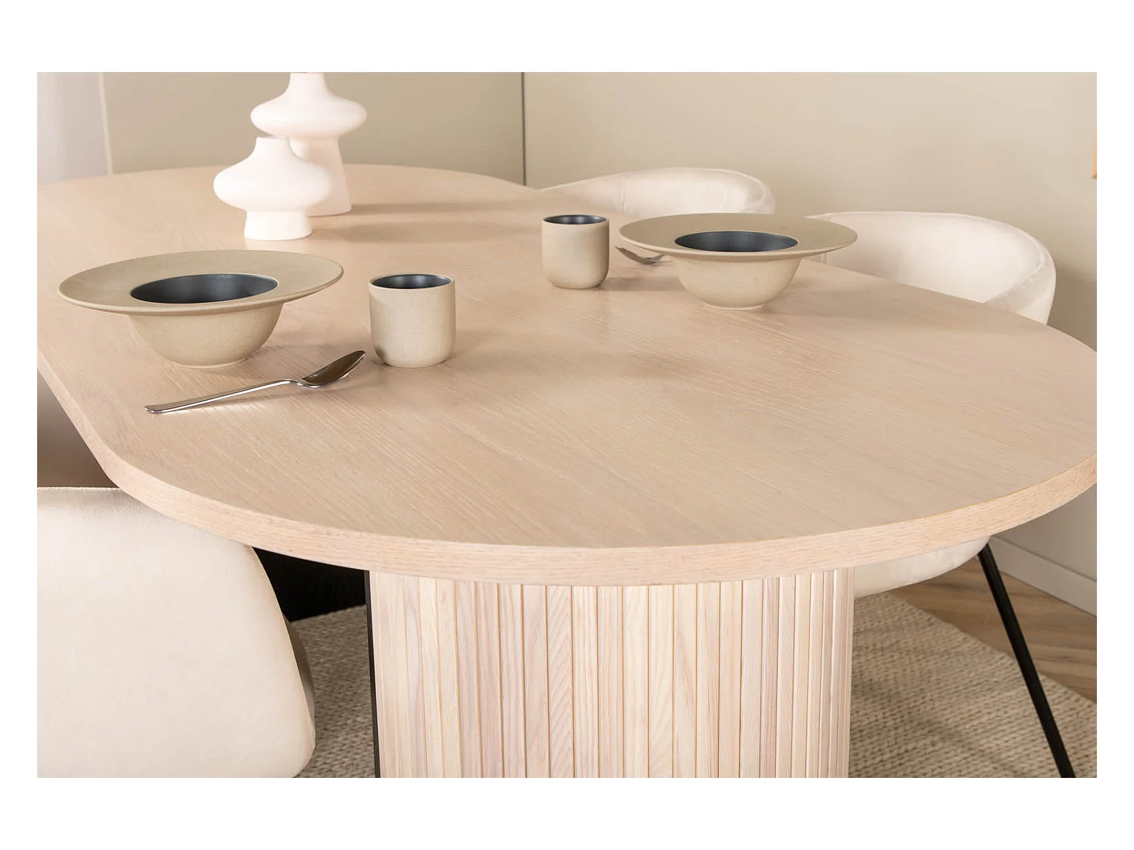 BiancaROWA eethoek eetkamertafel eik fineer en 4 Berit eetkamerstal beige.