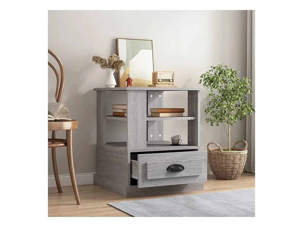 Bijzettafel 50x50x60 cm bewerkt hout grijs sonoma eikenkleurig