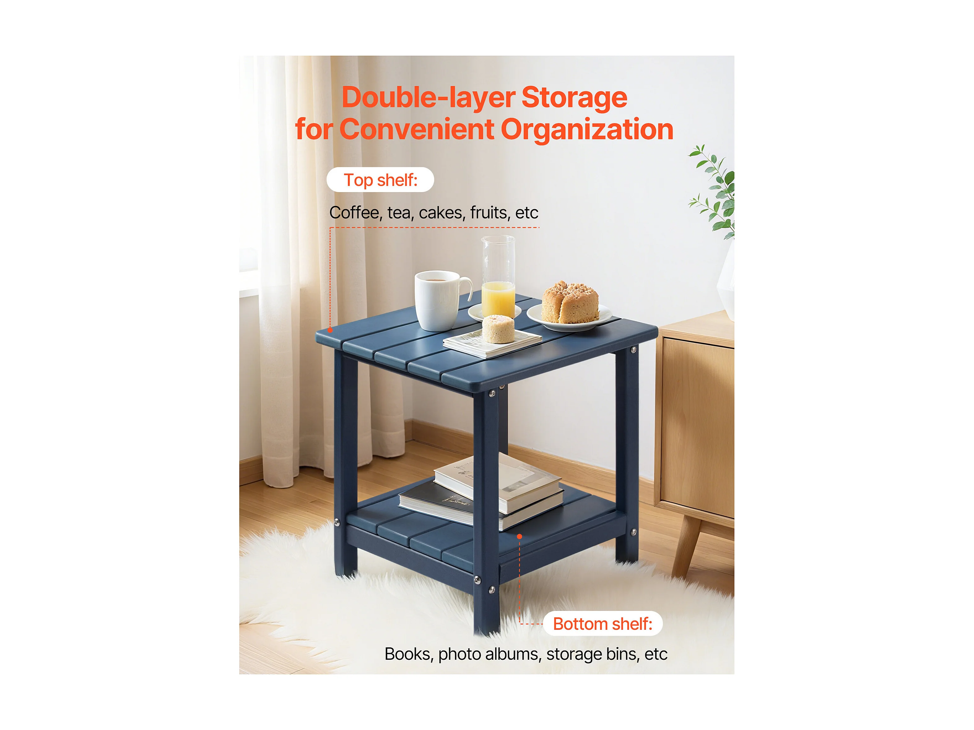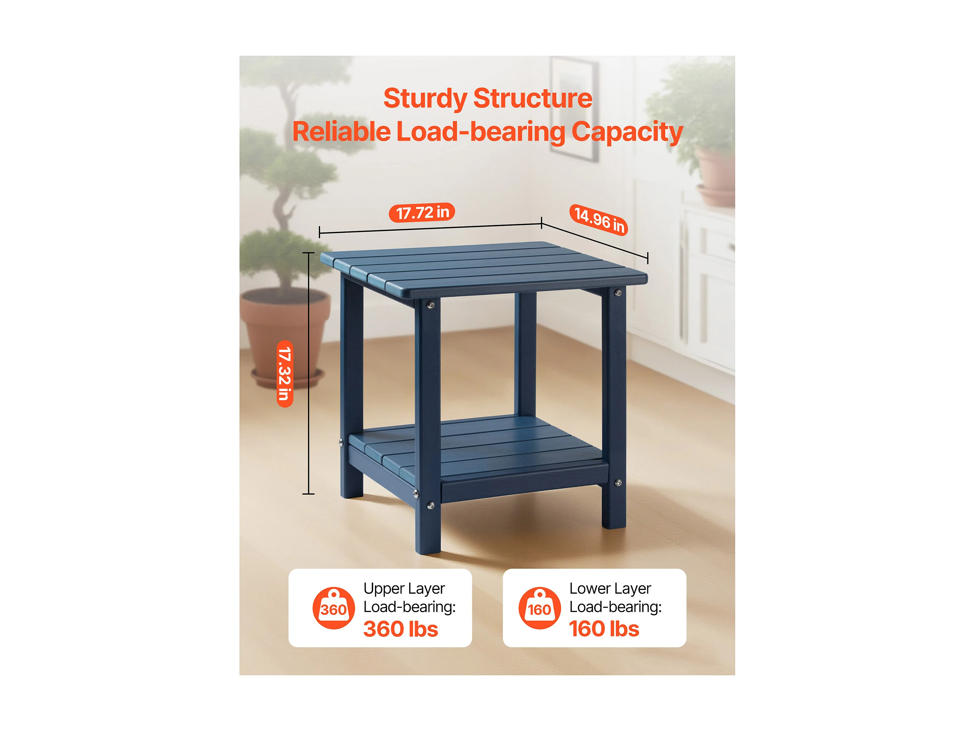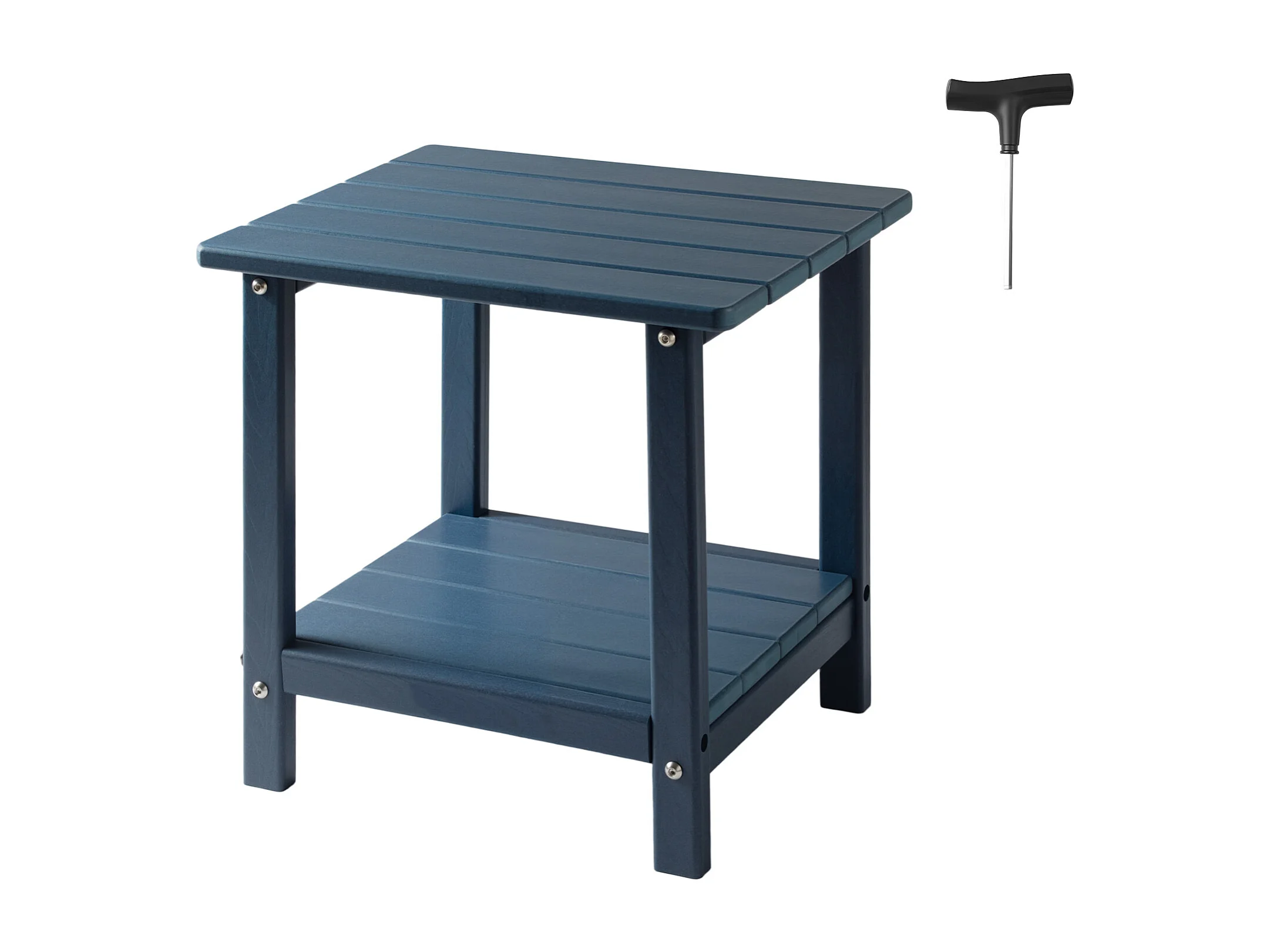 Bijzettafel Buiten Tuin SucceBuy, 2 Niveaus, 45 x 38 x 44 cm, van PEHD, Onderhoudsgemakkelijk, Weerbestendig, voor Terras, Zwembadrand, Blauw