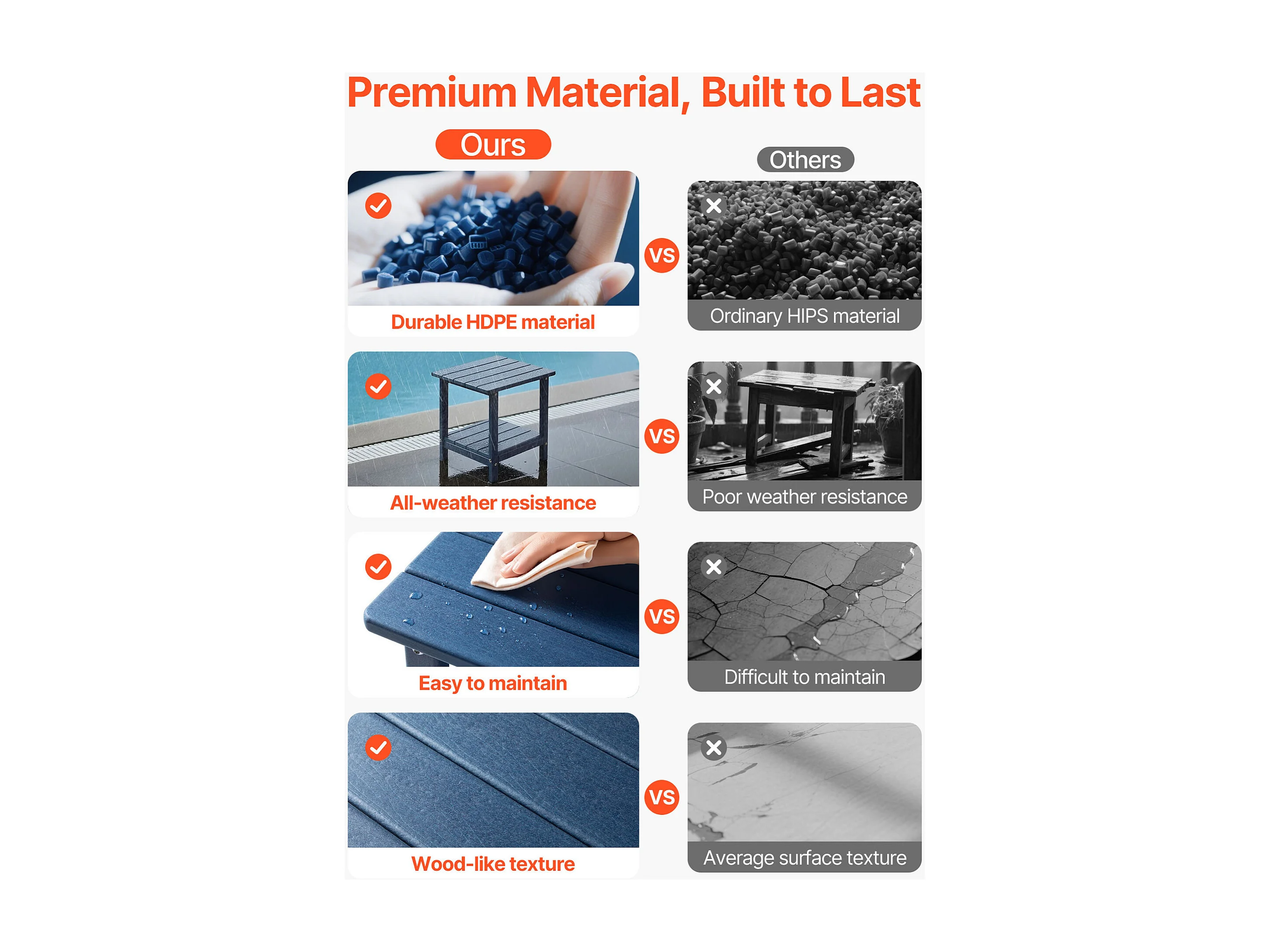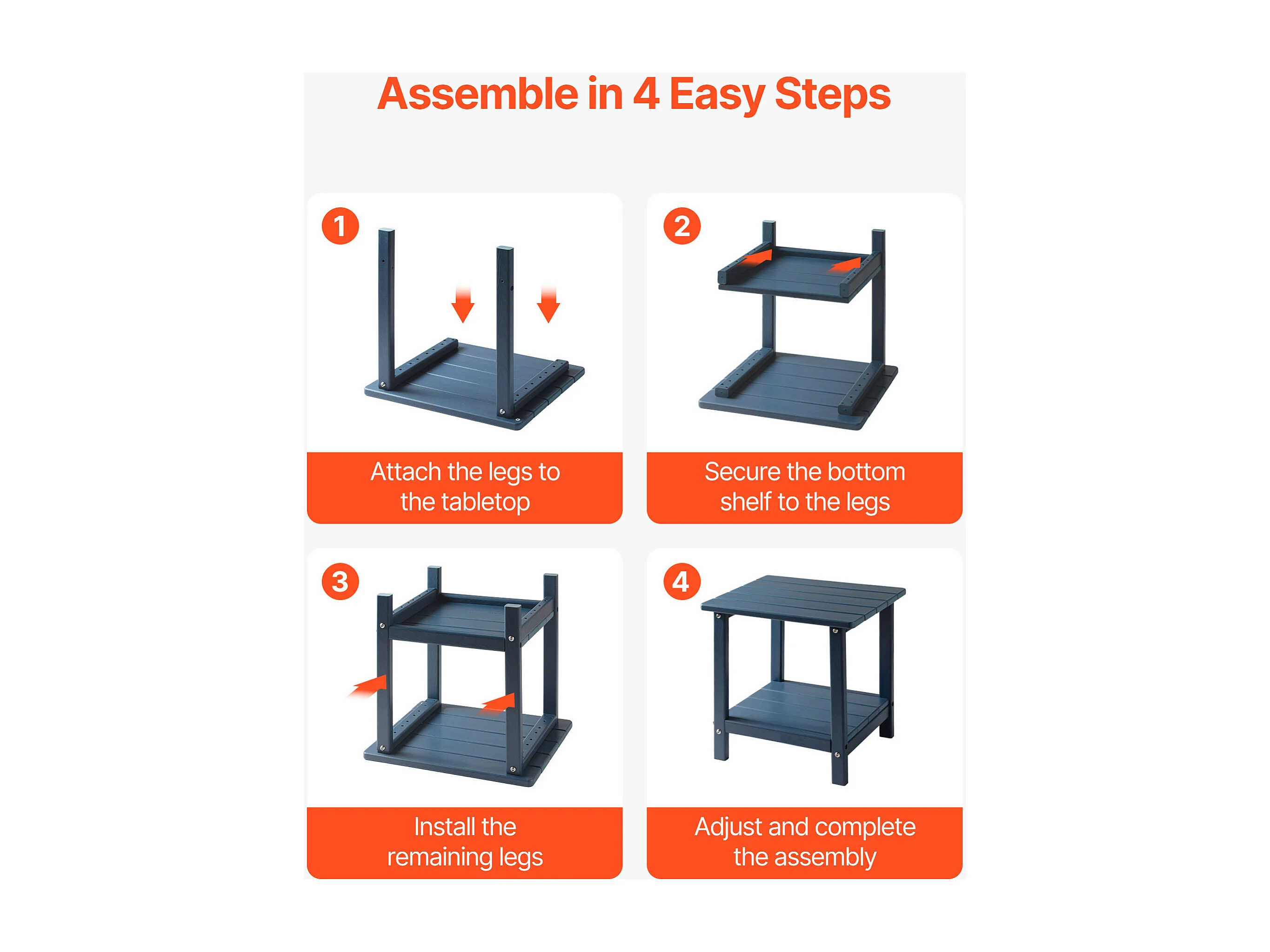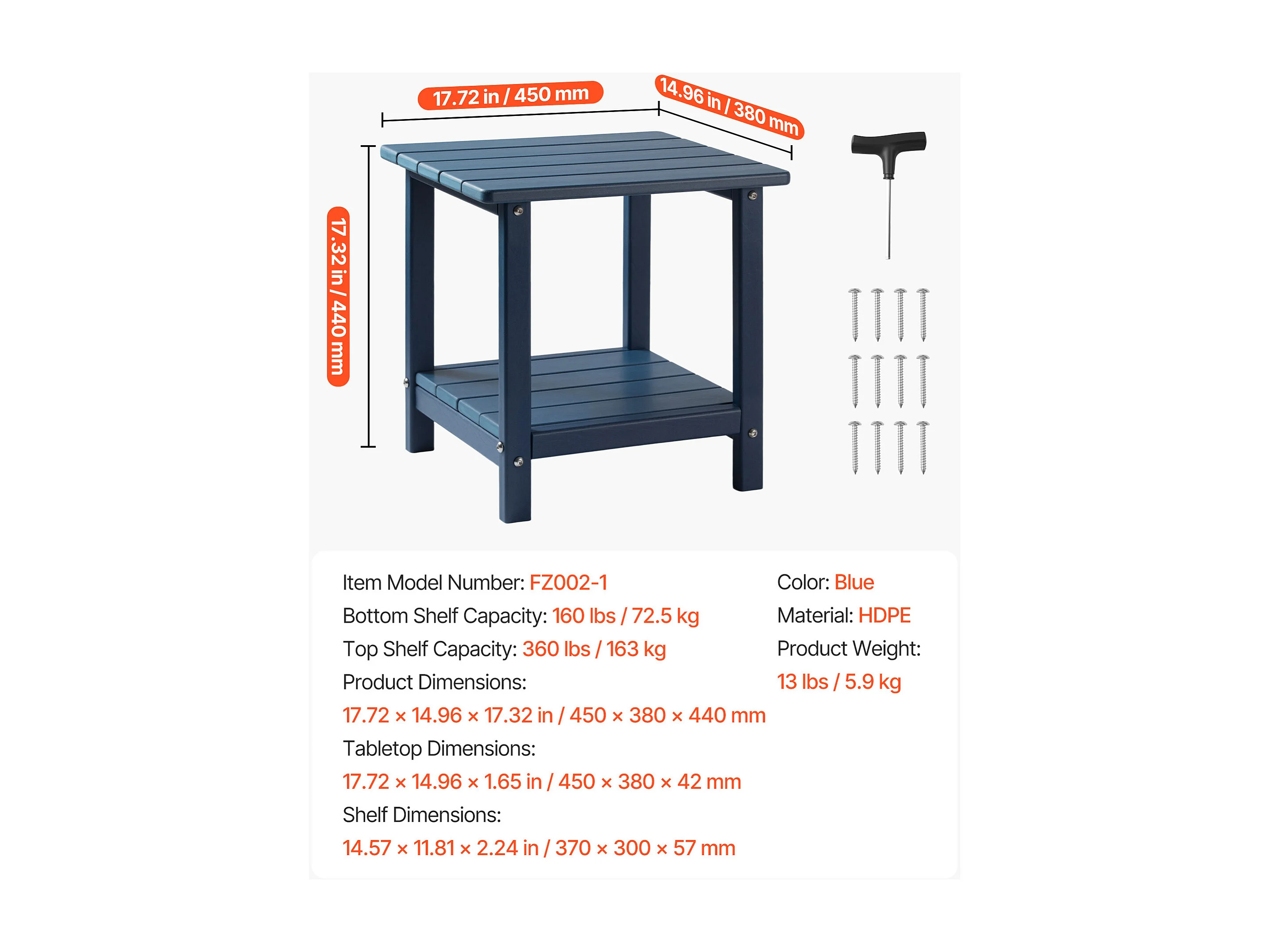 Bijzettafel Buiten Tuin SucceBuy, 2 Niveaus, 45 x 38 x 44 cm, van PEHD, Onderhoudsgemakkelijk, Weerbestendig, voor Terras, Zwembadrand, Blauw