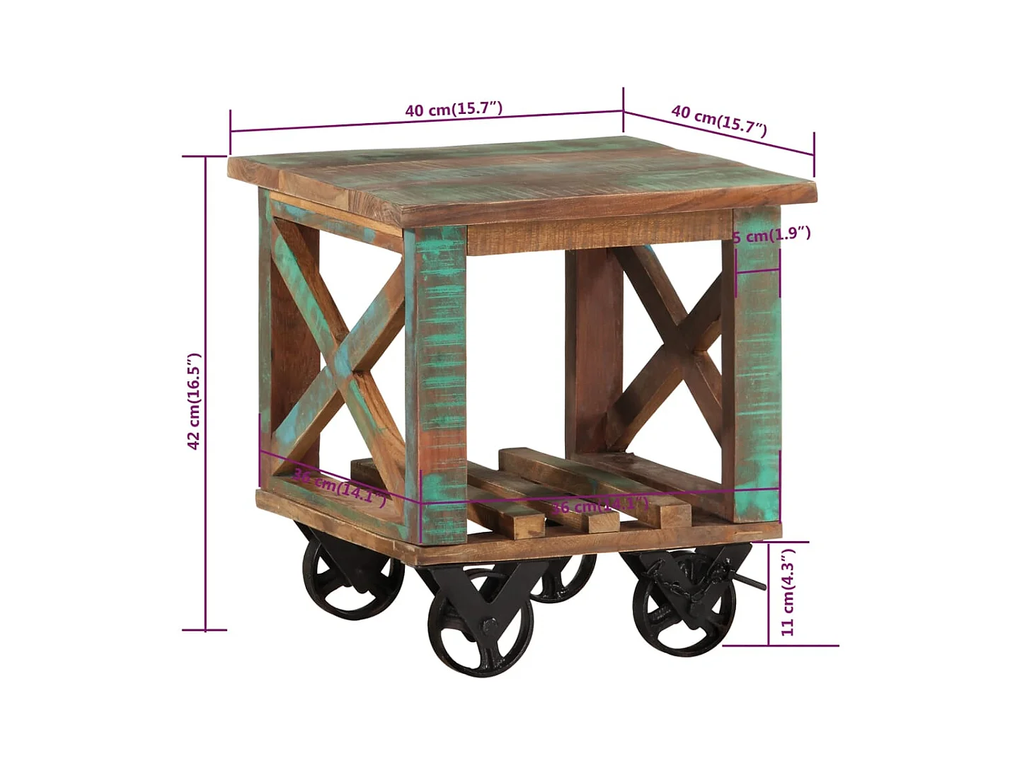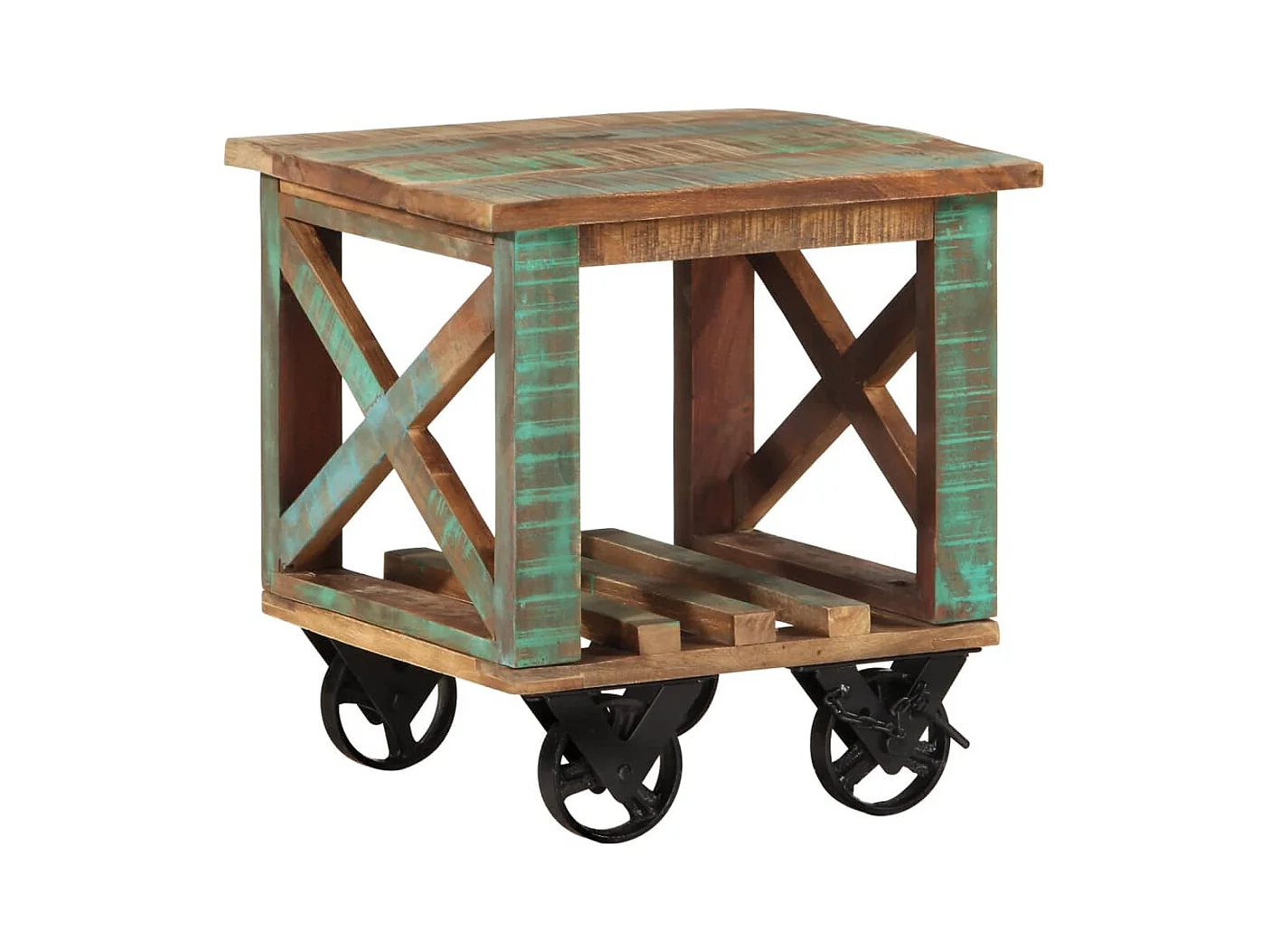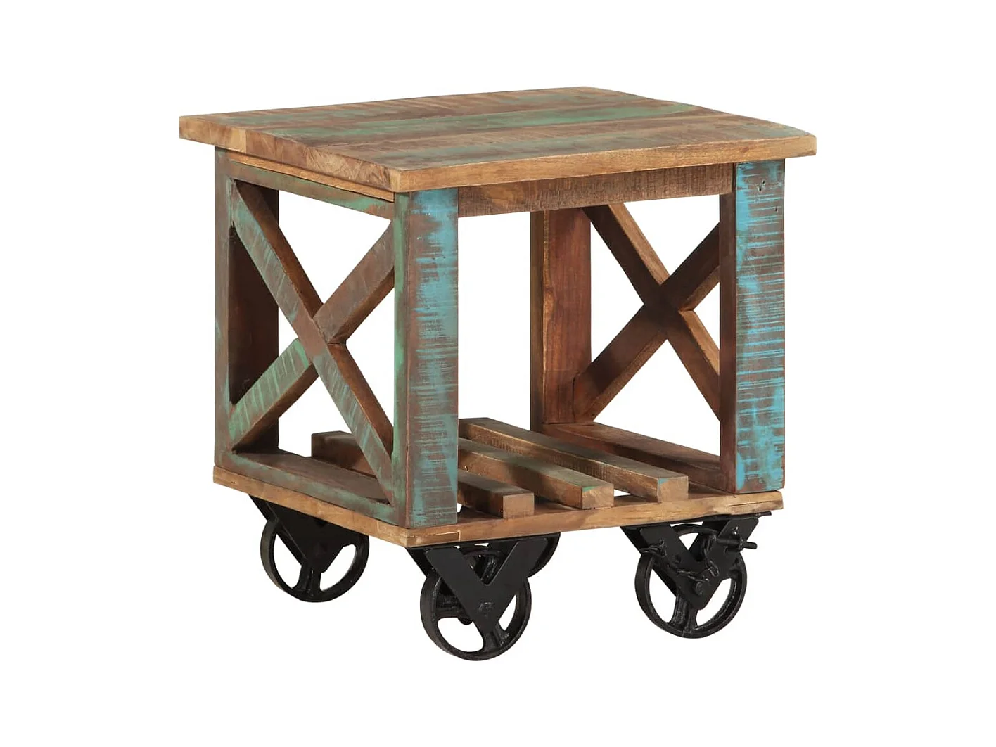 Bijzettafel met wielen 40x40x42 cm massief gerecycled hout