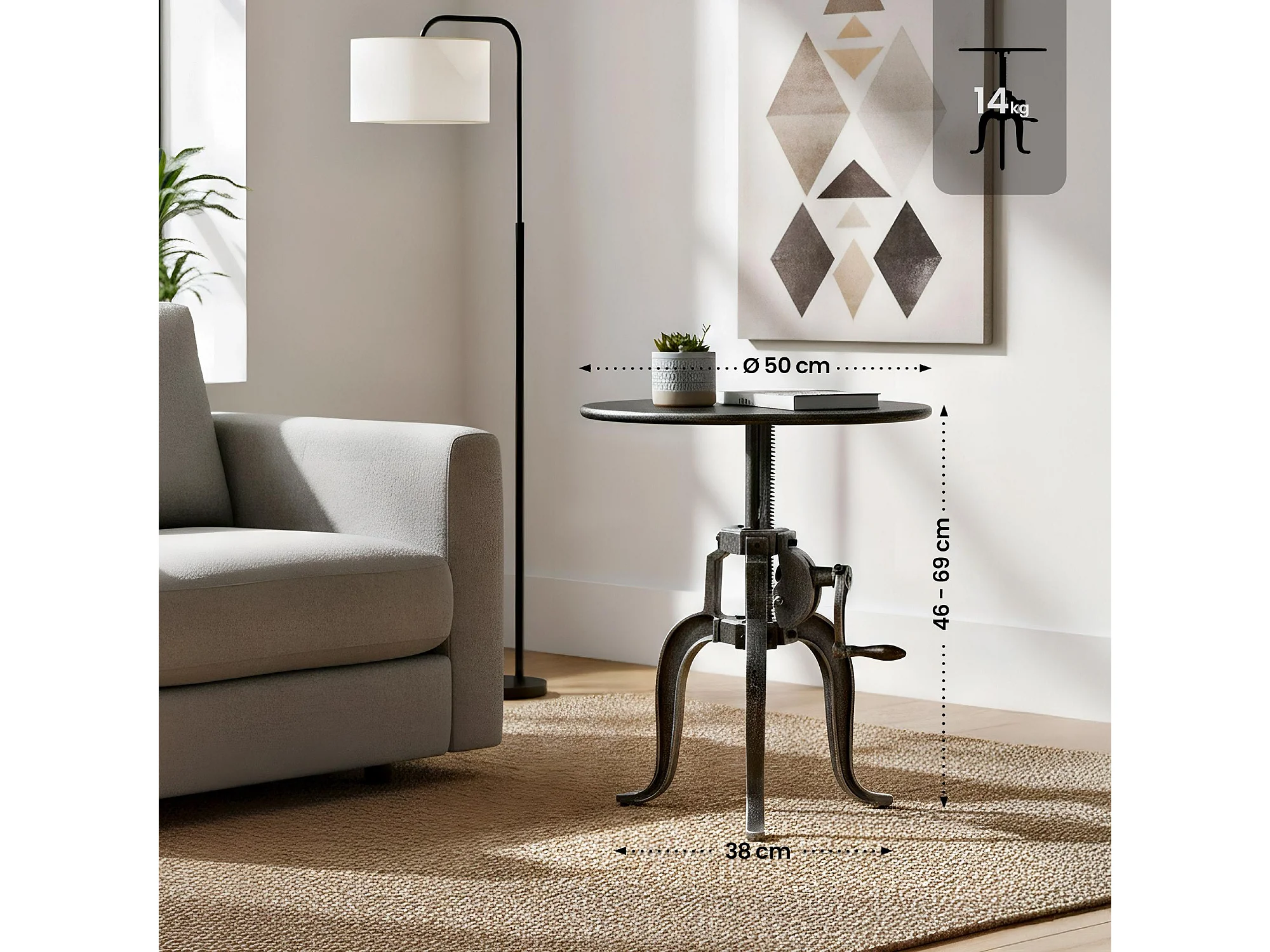 Bijzettafel - rond Ø 50 cm - Metaal - Argent antique - Marcos