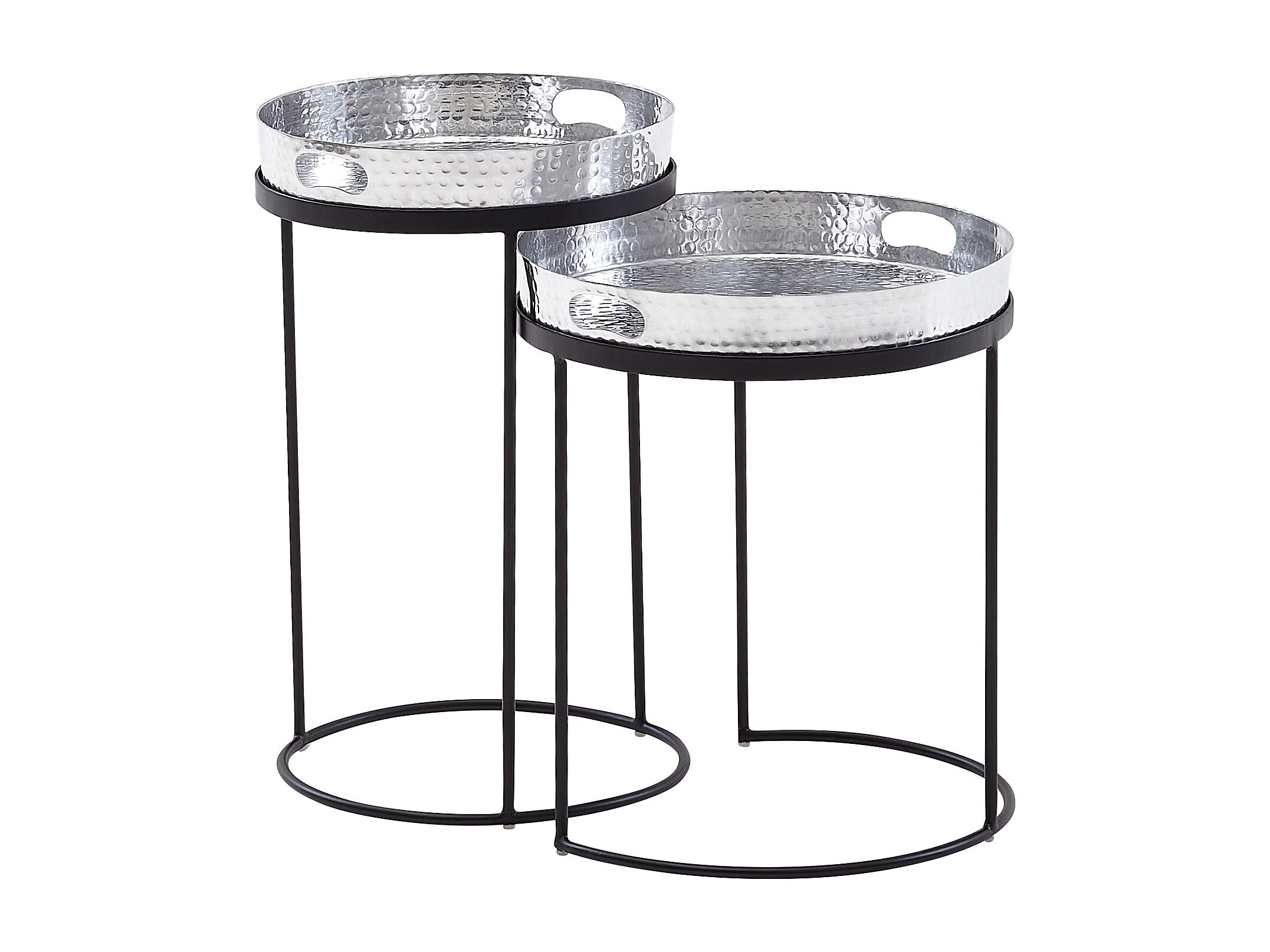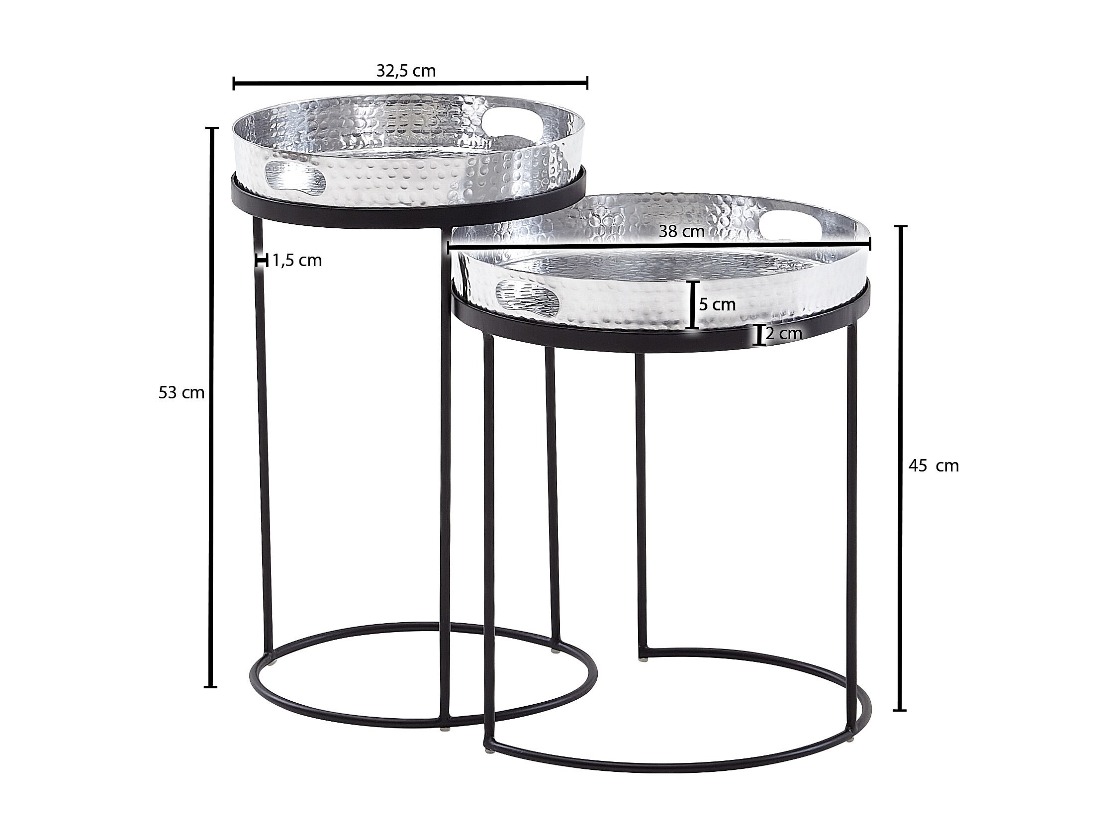 bijzettafel set van 2 zilver/zwart metaal hamerslag bijzettafel rond | salontafel uitneembaar blad | Dienbladtafel bank 2 stuks modern | Ronde salontafel