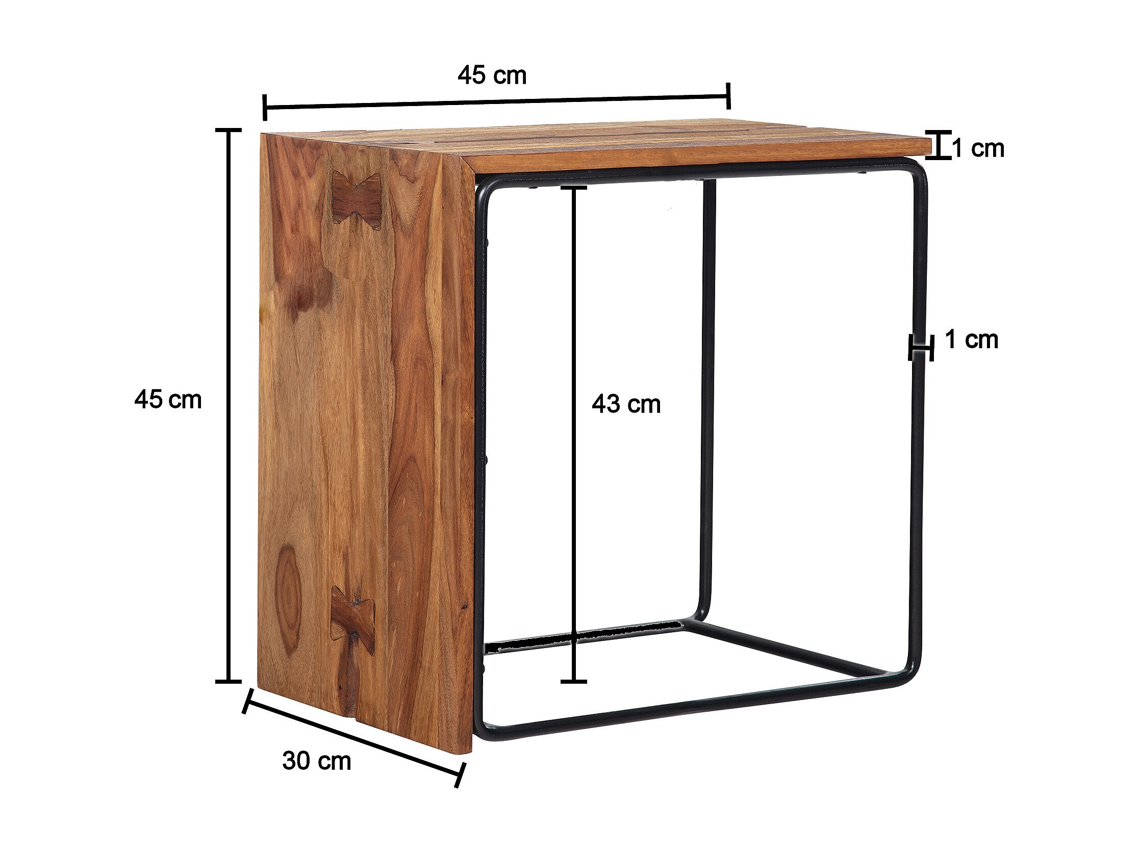 Bijzettafel - Sheesham hout/metaal - 45x30x45 cm - Uniek handgemaakt ontwerp
