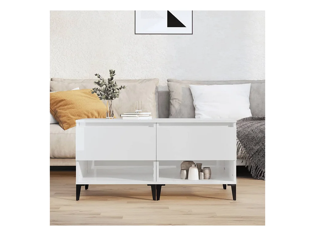 Bijzettafel 50x46x50 cm bewerkt hout hoogglans wit