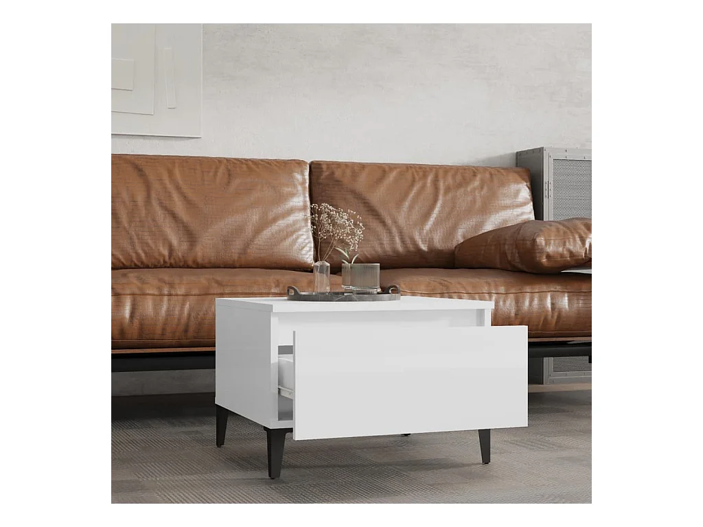 Bijzettafel Glanzend wit 50x46x35 cm Bewerkt hout