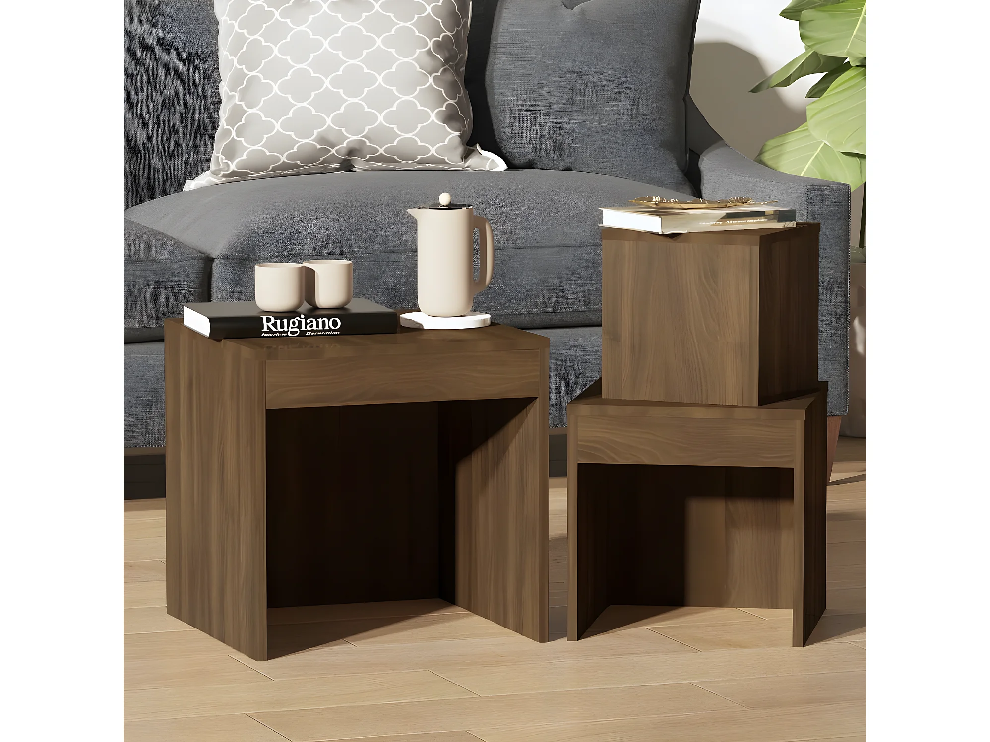 3-delige Tafeltjesset bewerkt hout gerookt eikenkleurig