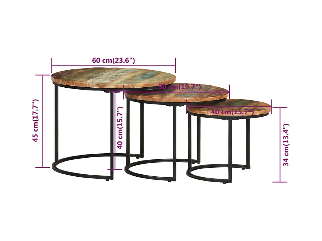 Bijzettafels 3 stuks Massief gerecycled hout