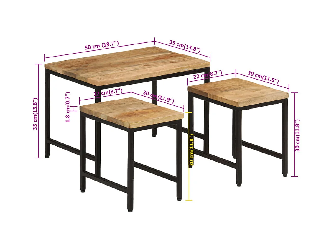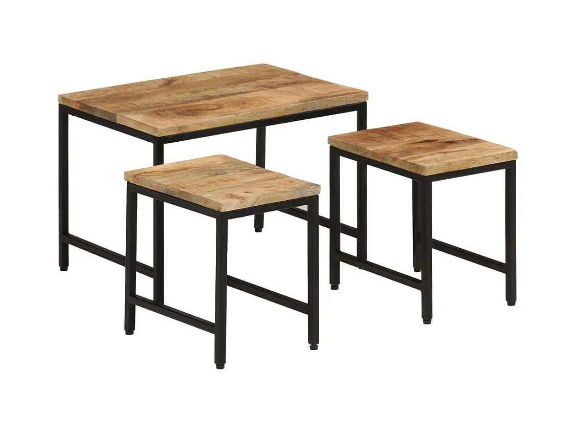 Bijzettafels 3 stuks ruw massief mangohout en ijzer