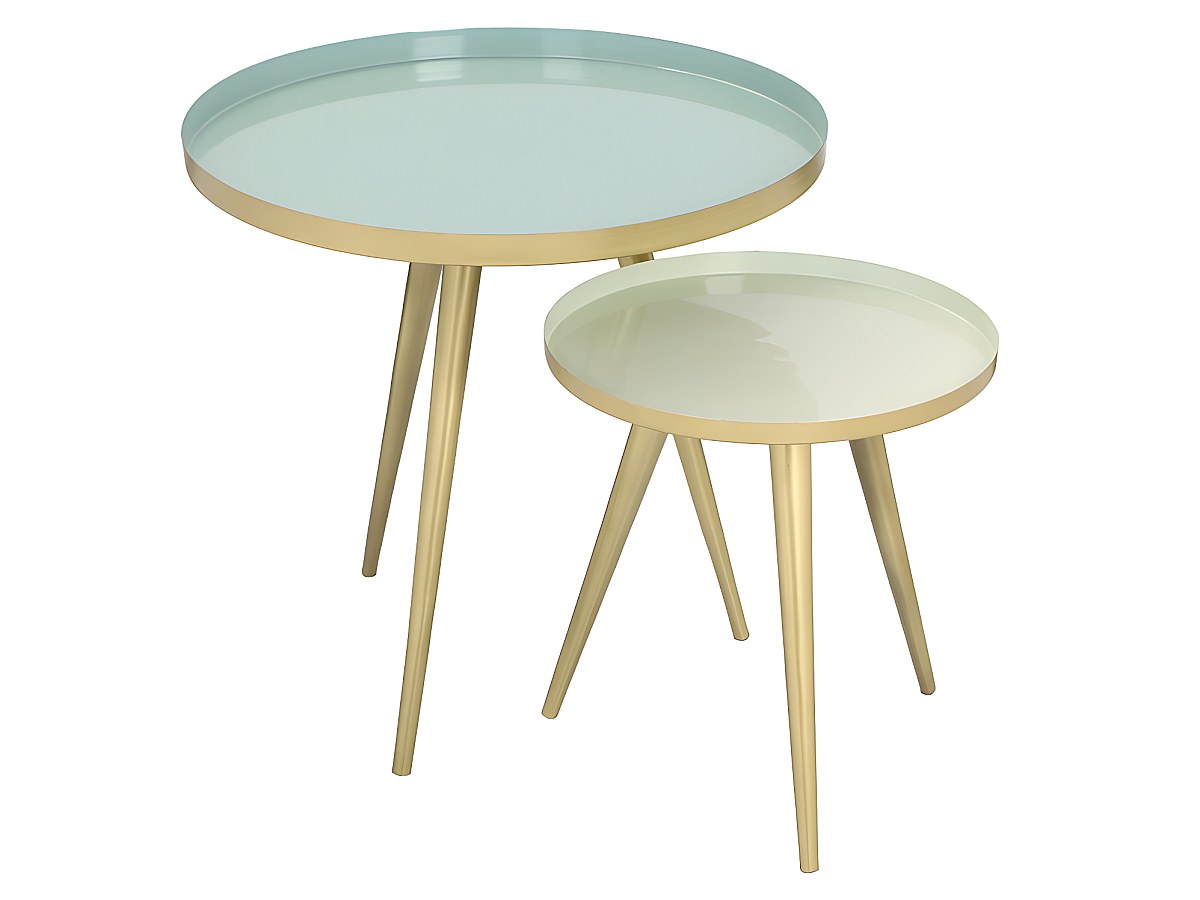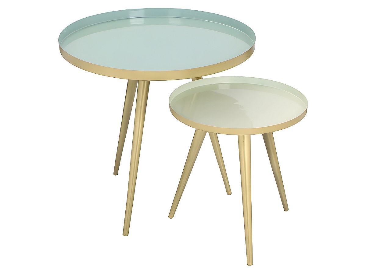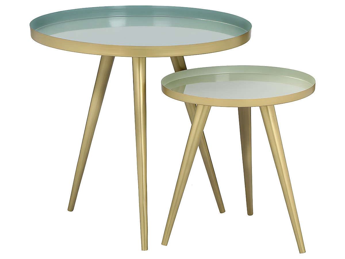 Bijzettafels FARRAH - Metaal - Groen en goudkleurig