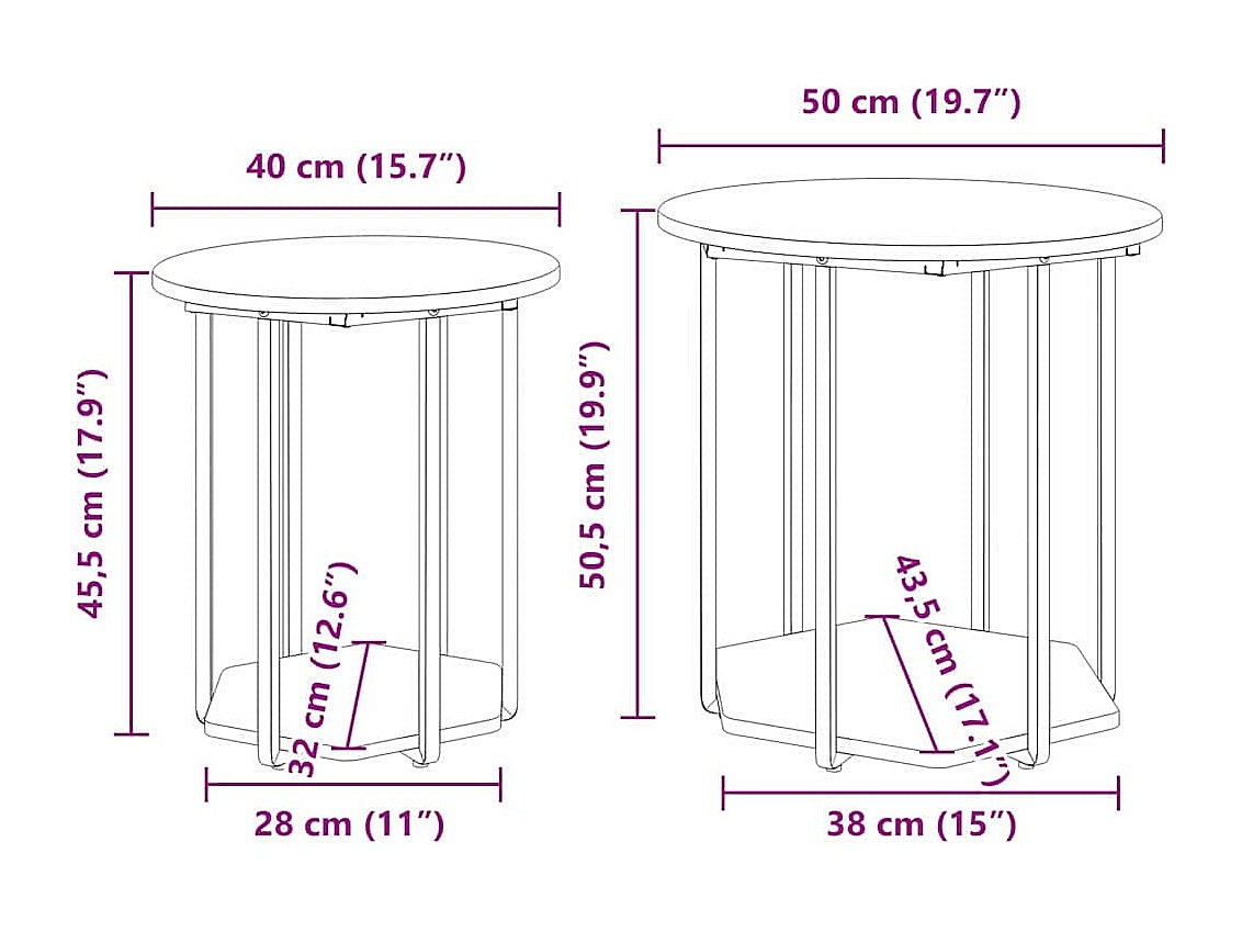 Set van 2 ronde salontafels, modern design, MDF, houtkleur (70 x 70 x 45 cm & 45,5 x 44 cm)
